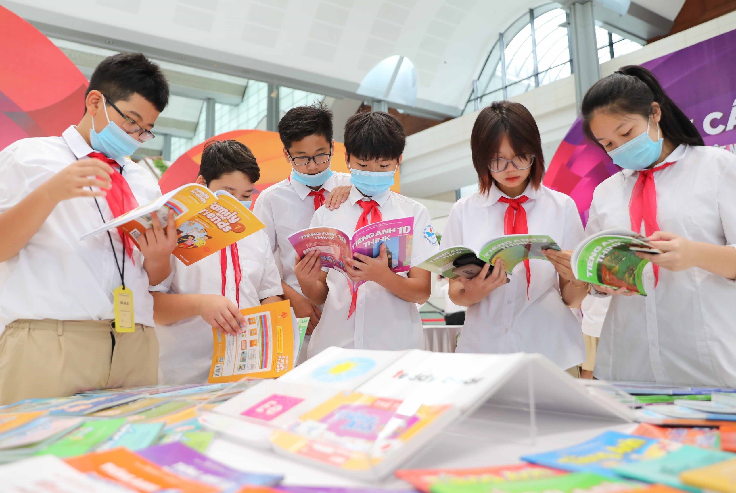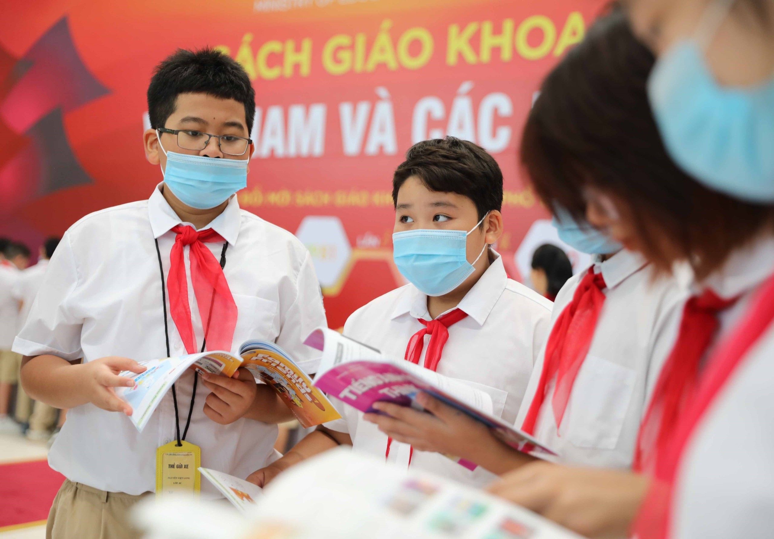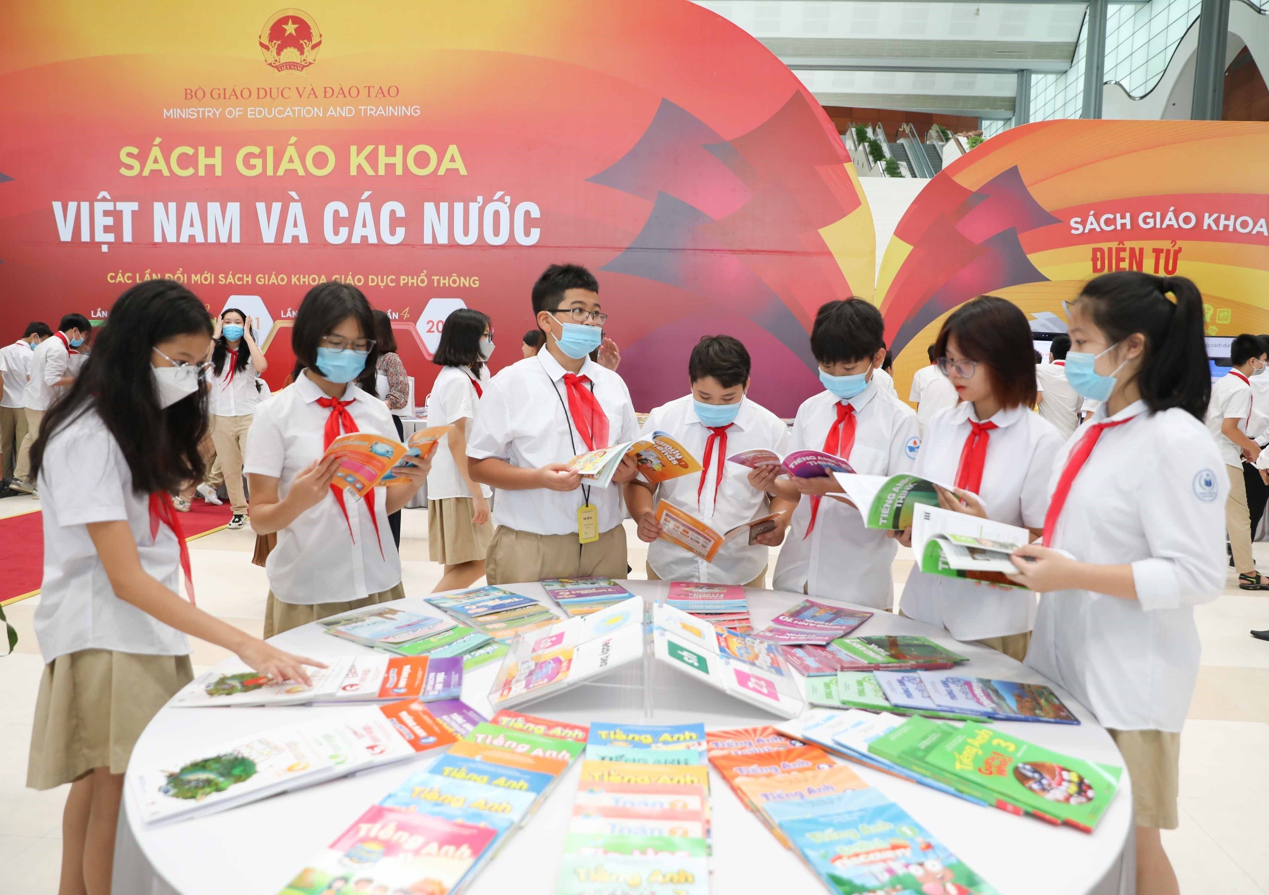 Học sinh tham quan trưng bày và tìm hiểu về sách giáo khoa Việt Nam, quốc tế tại Hội thảo, trưng bày sách giáo khoa giáo dục phổ thông ngày 28 và 29/9/2022