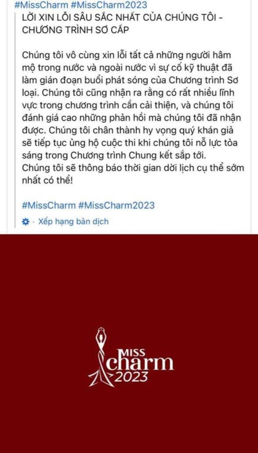 Mang danh là một cuộc thi quốc tế song những gì Miss Charm đem đến thật sự không xứng. Những hình ảnh sơ sài, thiếu chỉn chu liên tục lộ ra. Cách xử lý đến từ BTC cũng chỉ là xin lỗi, xin lỗi rồi lại xin lỗi, mà không có bất kỳ hành động nào cho thấy nỗ lực mang cuộc thi Miss Charm trở về đúng với danh xưng quốc tế mà nó vốn có.