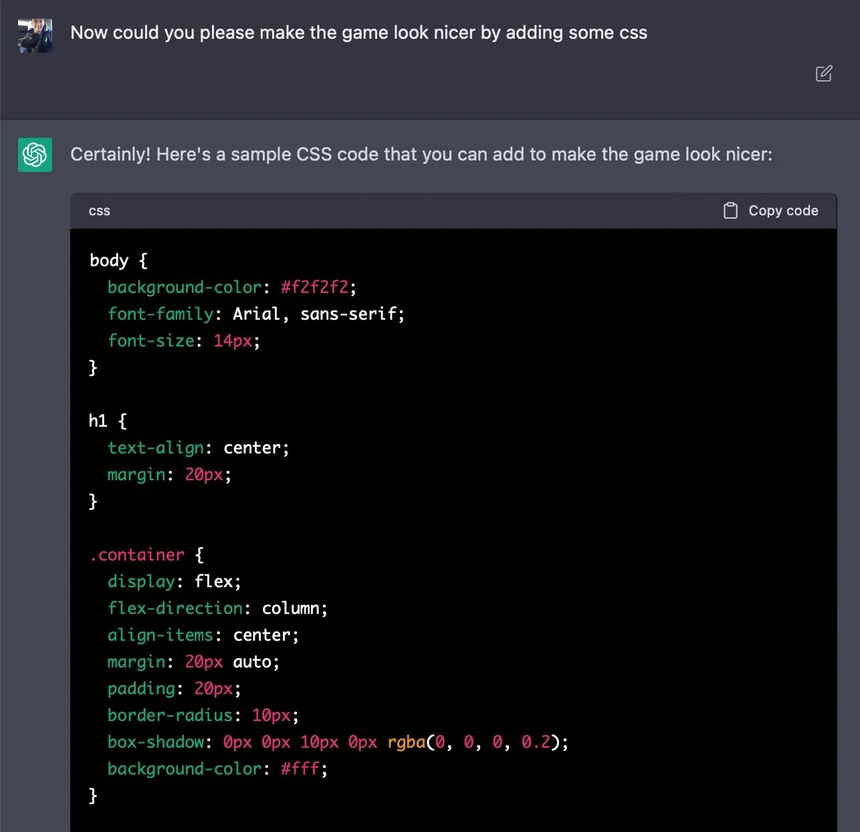 Sau nhiều tinh chỉnh, thêm chức năng và tối ưu thiết kế, PP đã có thể dùng ChatGPT tạo ra được phiên bản 0.9 của trò chơi mới. ChatGPT khẳng định trò chơi này chưa xuất hiện ở bất cứ đâu, tuy nhiên khẳng định này của ChatGPT có thể sai, khi dữ liệu huấn luyện nó không được cập nhật thêm kể từ 2021. Nếu nhận thấy khẳng định này không chính xác, bạn đọc có thể trực tiếp gửi email cho Puzzled Penguin.