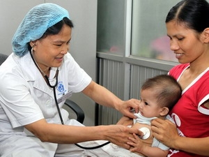 Khám, điều trị sốt cao cho bệnh nhi. Ảnh Hữu Oai/TTXVN