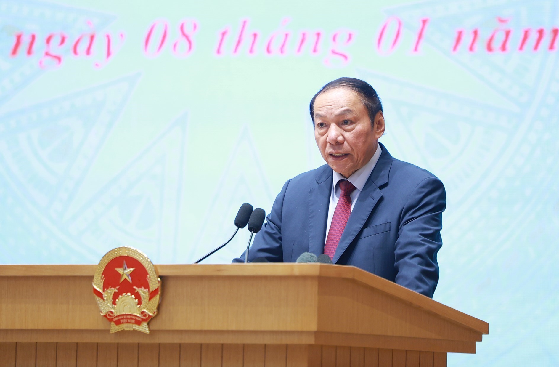 Bộ trưởng Bộ Văn hoá Thể thao và Du lịch Nguyễn Văn Hùng phát biểu tham luận tại Hội nghị tổng kết công tác năm 2025, triển khai công tác năm 2026 của Chính phủ và chính quyền địa phương