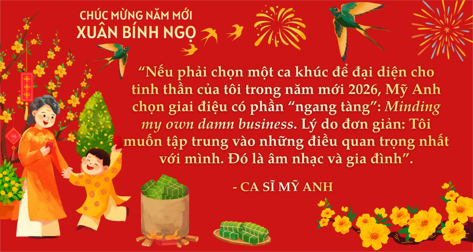 “Đó là sự lựa chọn của Mỹ Anh - cho tới thời điểm hiện tại” - cô chia sẻ. Mỗi quyết định đều là sự cân bằng giữa tính toán, mạo hiểm và một phần yên tâm nhất định. Ở tuổi đời còn rất trẻ, lựa chọn ấy cho phép cô giữ toàn quyền với âm nhạc của mình, đồng thời buộc bản thân phải trưởng thành nhanh hơn trong vai trò một người làm nghề độc lập.