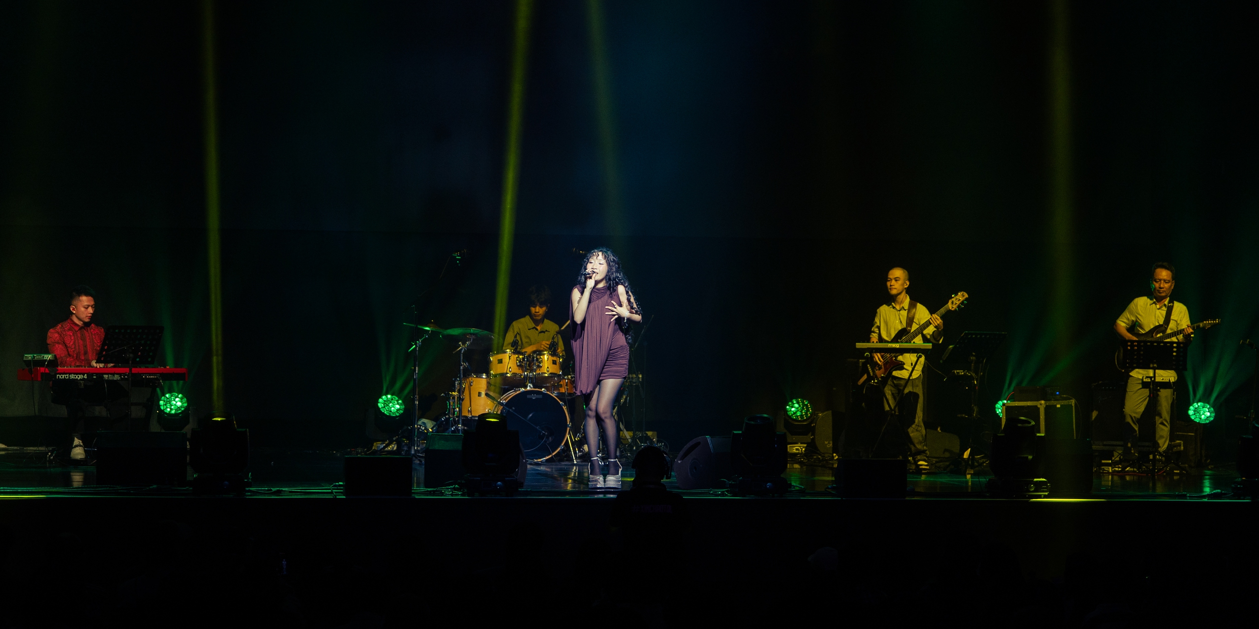 Mỹ Anh trên sân khấu "Mỹ Linh xin chào tour 2025" cùng gia đình tại Hàn Quốc