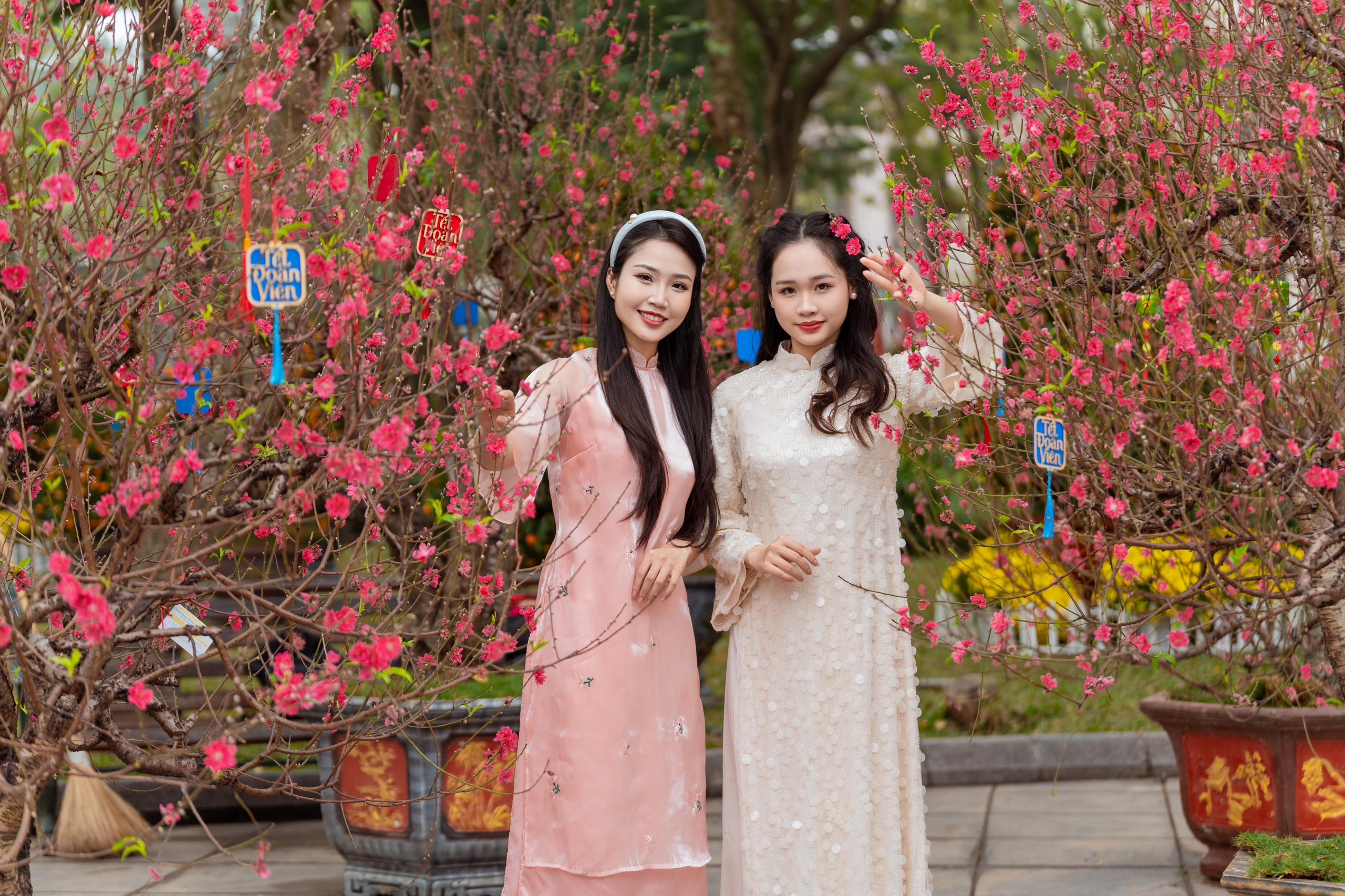 Điểm nhấn khiến người dân và du khách thích thú là sự quy tụ của hơn 300 gốc đào và gần 300 cây quất nghệ thuật. Đáng chú ý, 85% số đào tại đây là đào cổ và đào tạo hình nghệ thuật quý hiếm, đan xen cùng những cây quất lục bình khổng lồ được tạo dáng kỳ công, tạo nên một chỉnh thể quy mô ngay giữa lòng di sản Hồ Gươm.