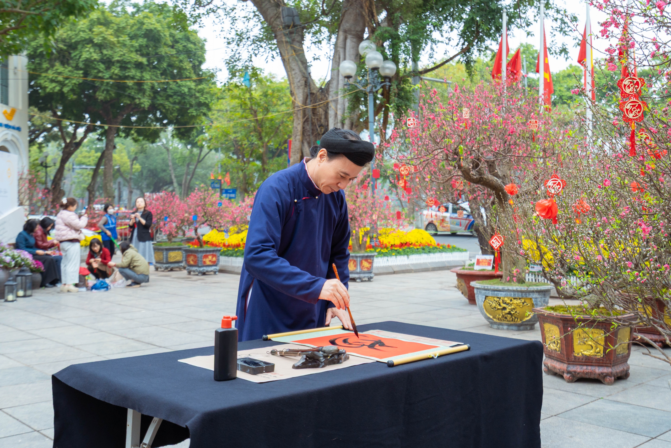 Bên cạnh đó, hoạt động xin chữ ông đồ với hình ảnh mực tàu, giấy đỏ và những tà áo dài thướt tha đã trở thành nhịp cầu nối quá khứ với hiện tại, làm tôn lên nét đẹp thanh lịch vốn có của người Tràng An giữa không gian di sản.