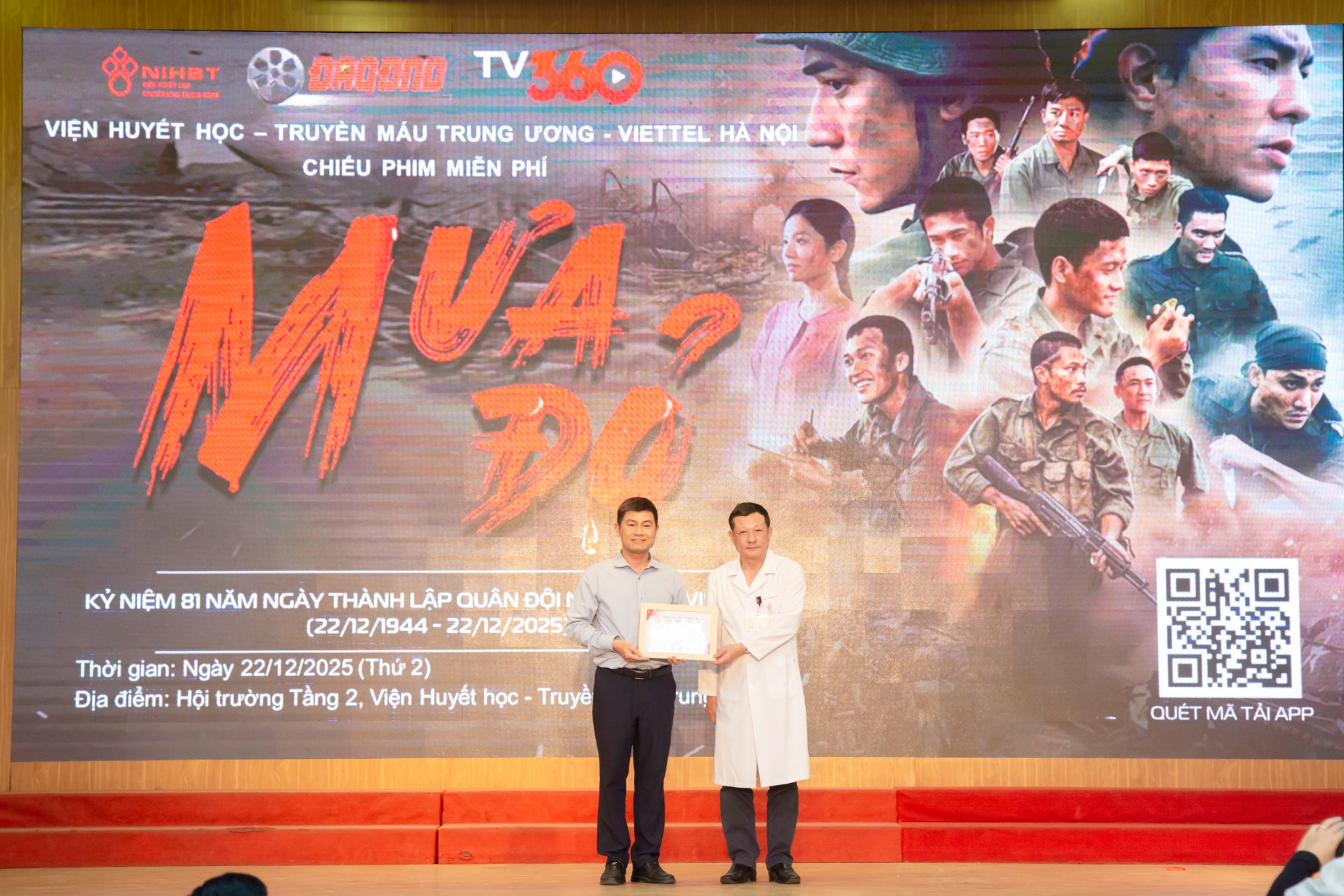 Buổi công chiếu miễn phí phim "Mưa đỏ" tổ chức ngay tại Viện nhân dịp Ngày Thành lập Quân đội nhân dân Việt Nam.