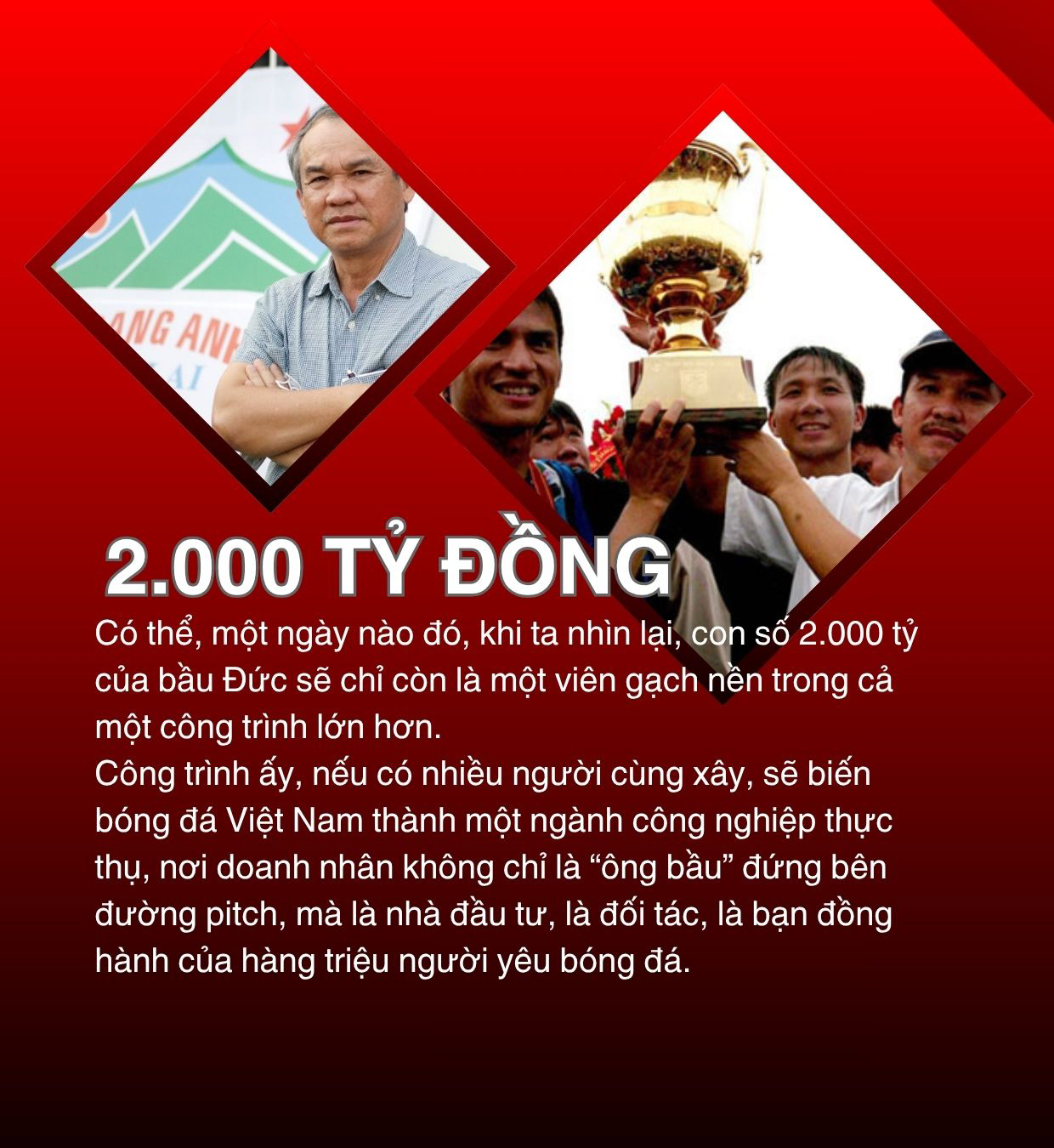 Chắc chẳn bầu Đức "đếm" số tiền của mình bỏ ra không phải để khoe khoang. Người đàn ông vốn thẳng thắn này chỉ muốn cho thấy rằng, nếu không có sự đồng hành của doanh nhân, bóng đá Việt Nam khó mà tồn tại trong hình hài chuyên nghiệp như hiện nay. Hai nghìn tỷ đồng – con số đủ để xây cả một khu công nghiệp, hay mở thêm vài nhà máy – vậy mà ông lại chọn đổ vào bóng đá, thứ mà ông gọi là đam mê đến mức "chấp nhận lỗ, nhưng không thể bỏ".