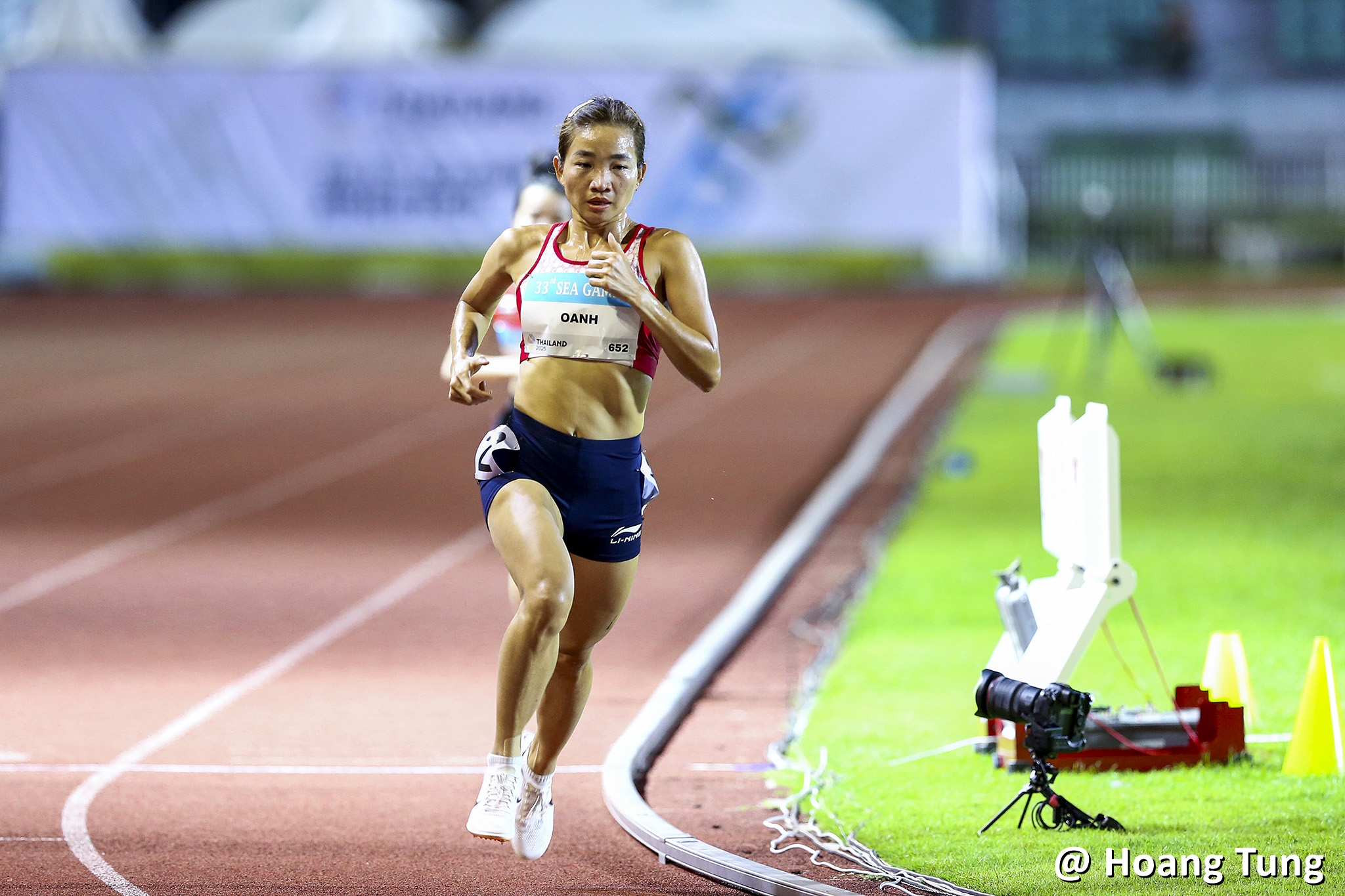 Ở nội dung được xem là khó bậc nhất của điền kinh, Nguyễn Thị Oanh vẫn thể hiện sự vượt trội tuyệt đối. Ngay sau tiếng súng xuất phát, cô chủ động vươn lên dẫn đầu, duy trì nhịp độ ổn định suốt 7,5 vòng sân. Với thời gian 10 phút 13 giây 75, Oanh về nhất một cách thuyết phục, trong khi đồng đội Đoàn Thu Hằng cán đích ở vị trí thứ hai.