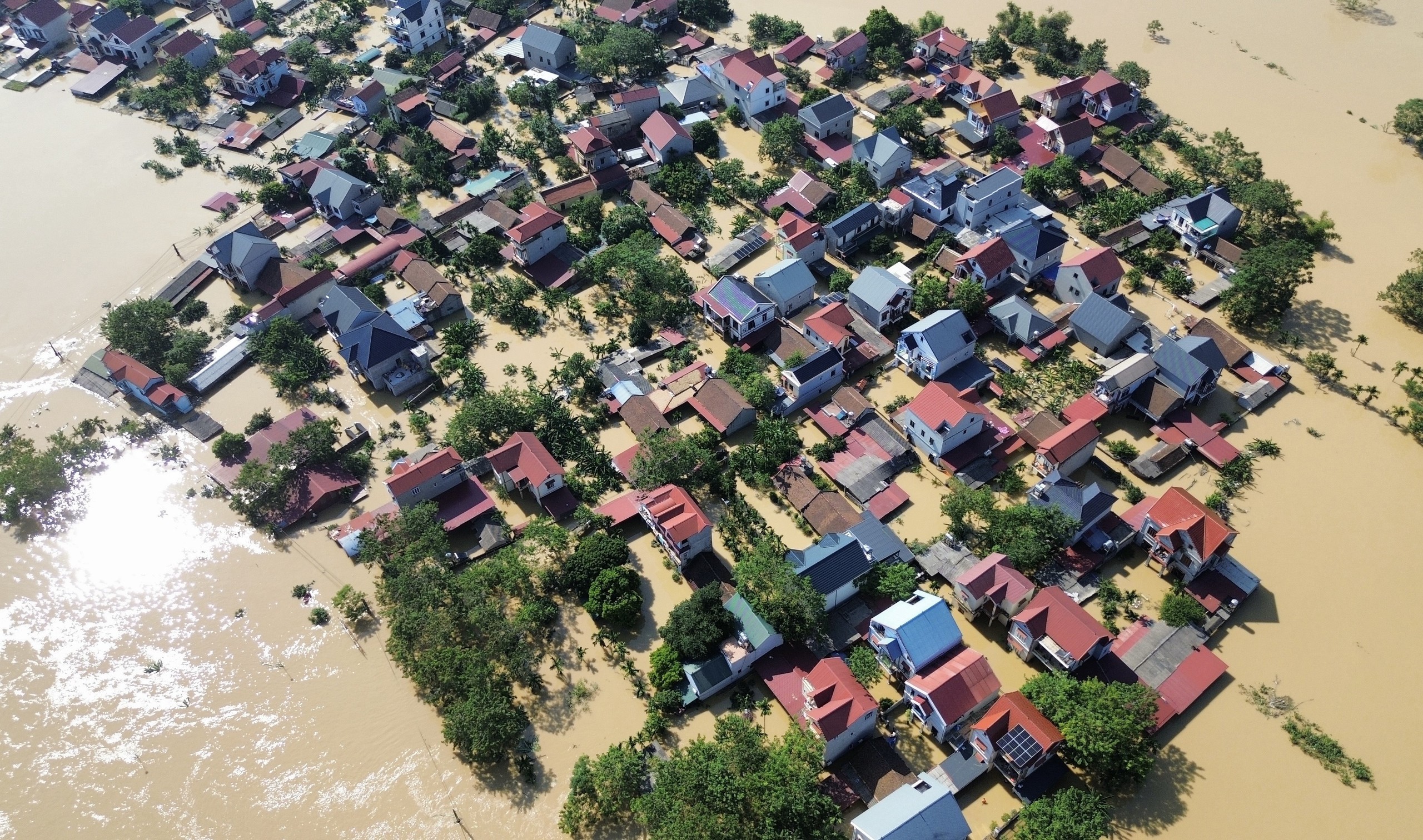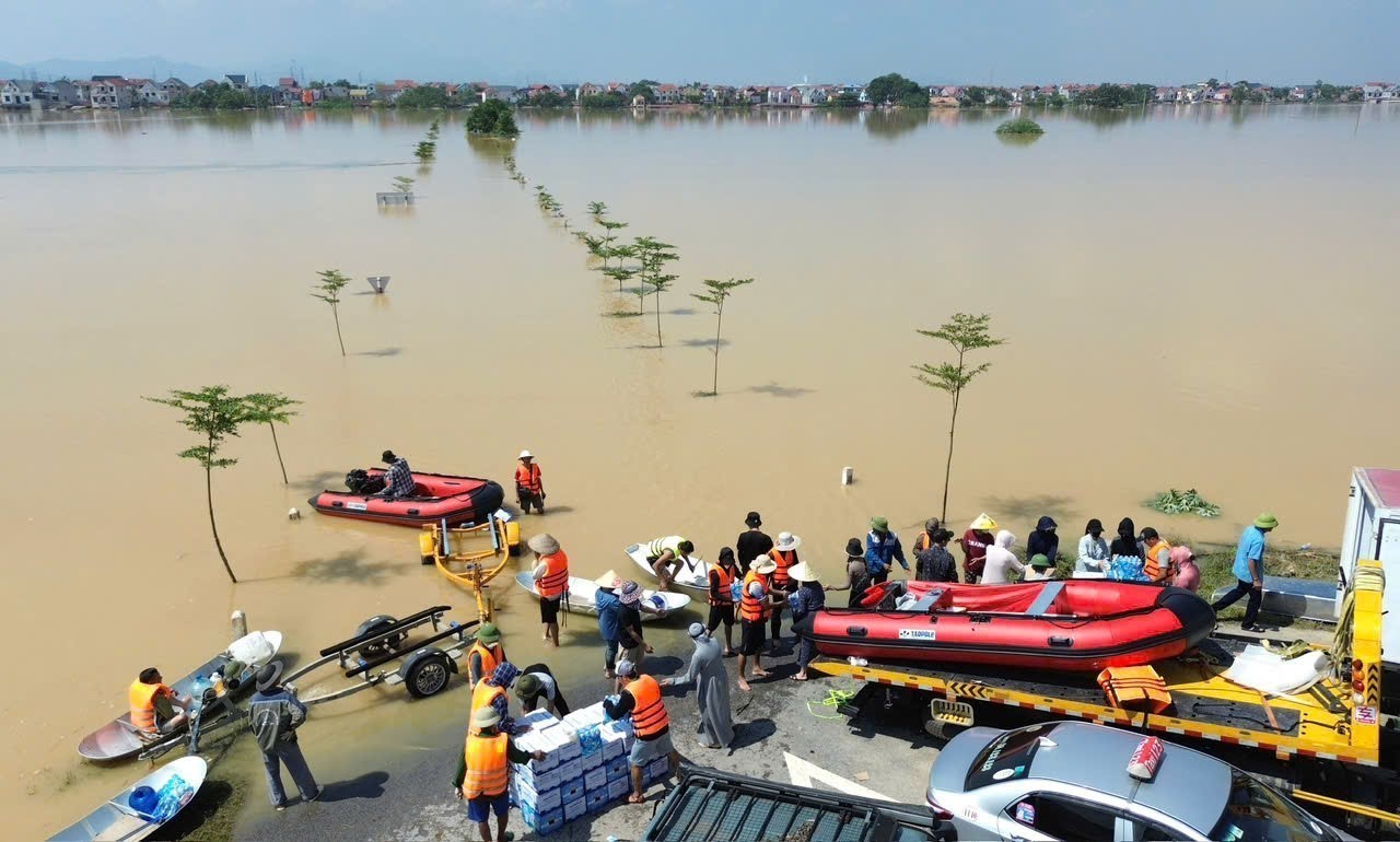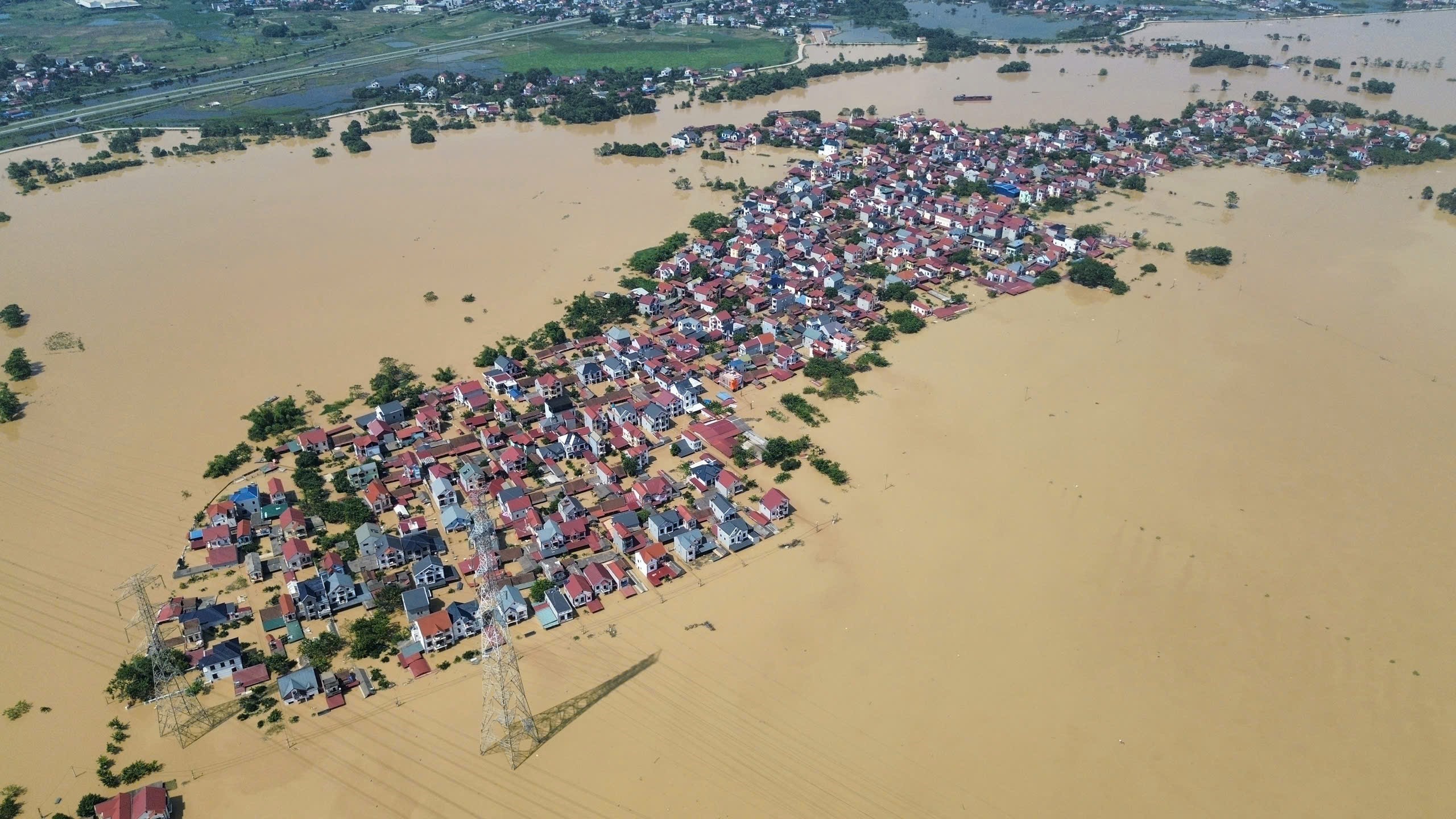 Do lũ sông Cầu, sông Thương vượt đỉnh lịch sử nhiều nơi trên địa bàn xã Hợp Thịnh, Bắc Ninh chìm trong biển nước