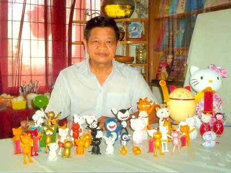 1. Công nghệ tạo hình bằng vỏ trứng của ông Tâm đã không còn xa lạ với công chúng nữa. Ông đã từng được ghi vào kỷ lục Việt Nam là Người tạo hình bằng vỏ trứng nhiều nhất với hàng trăm mẫu khác nhau. Nhưng không dừng lại ở đó, từ dạo Hè, ông đã nghĩ đến món quà... mừng năm mới Tân Mão. Và thế là, ròng rã từ đó đến giờ ông bắt tay vào làm những chú mèo đủ chủng loại. Với ông, chế ra một con mèo thì chỉ là... chuyện vặt. Vì thế ông muốn xây dựng những câu chuyện về con mèo.