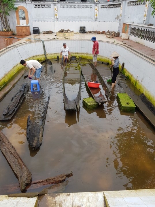 Những con thuyền vớt sông được chuyển về cơ sở Quảng Yên (Quảng Ninh) - Bảo tàng Phạm Huy Thông và Viện Nghiên cứu Bạch Đằng thuộc Trung tâm Tiền sử Đông Nam Á, để ngâm bảo quản trong bể bơi của cơ quan. Những mẫu gỗ thuyền đầu tiên được tôi và giáo sư Bellwood mang phân tích loại gỗ và định tuổi carbon phóng xạ (C14) tại Dresden (Đức) và Canberra (Úc).