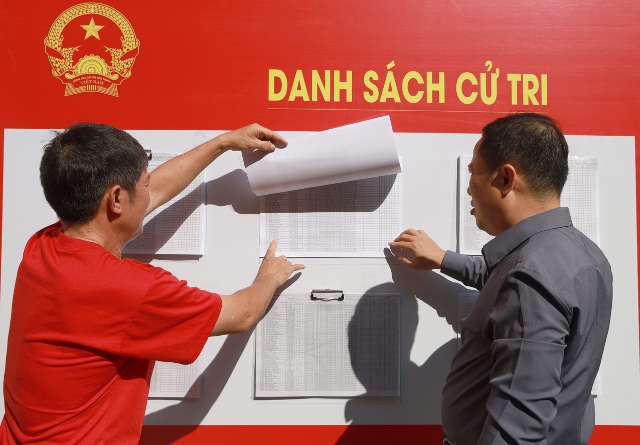 Cử tri phường Nam Nha Trang, tỉnh Khánh Hòa xem danh sách cử tri niêm yết tại khu vực bỏ phiếu bầu cử. Ảnh: Xuân Triệu