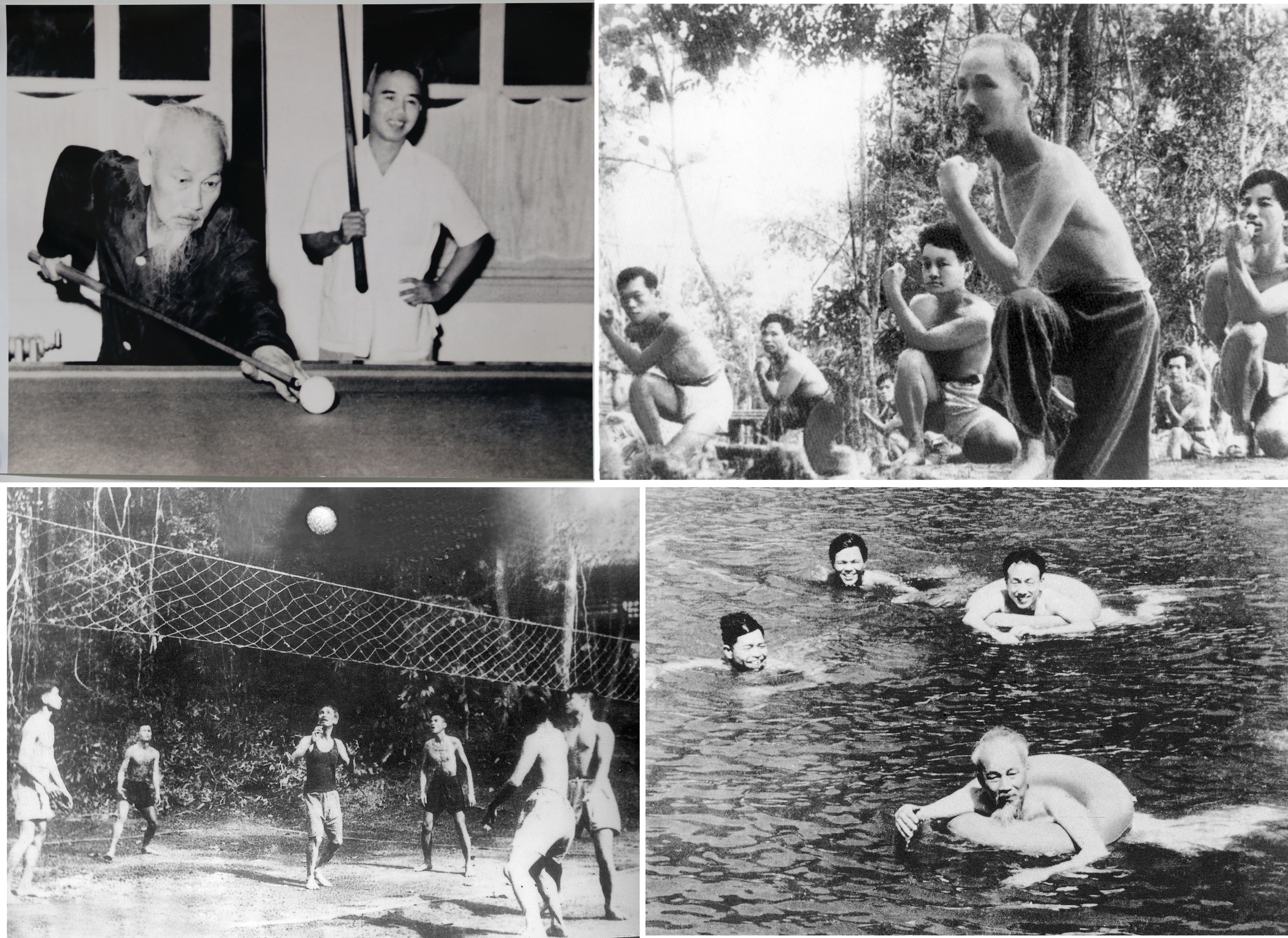 3. Bác Hồ tập luyện các môn thể thao như: Bóng chuyền, võ thuật, bơi, bi-a...