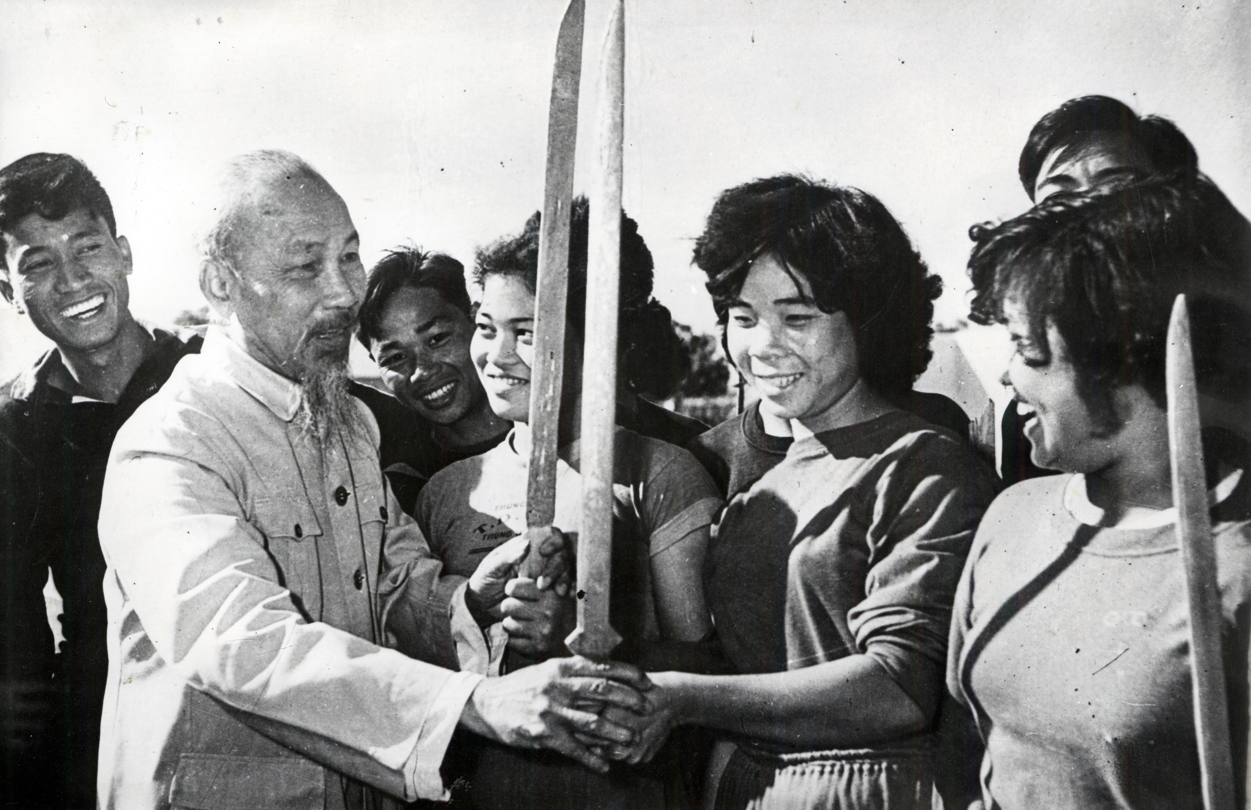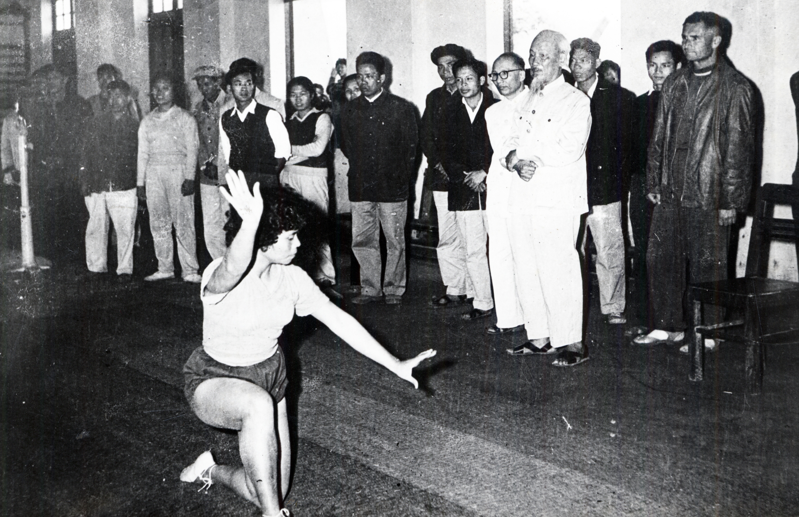 5. Bác Hồ sửa động tác cầm kiếm cho học sinh Trung cấp Thể dục thể thao Trung ương trong chuyến Người về thăm trường ngày 14/12/1961.