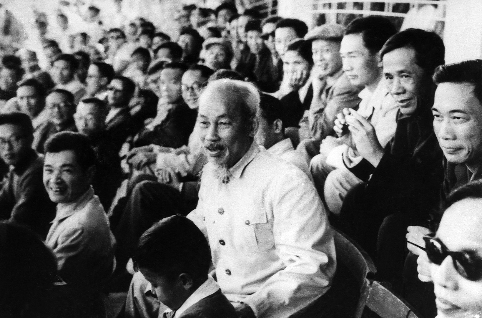 7. Bác Hồ cùng các đồng chính lãnh đạo Đảng, Chính phủ dự khán trên sân vận động Hàng Đẫy, Hà Nội.
