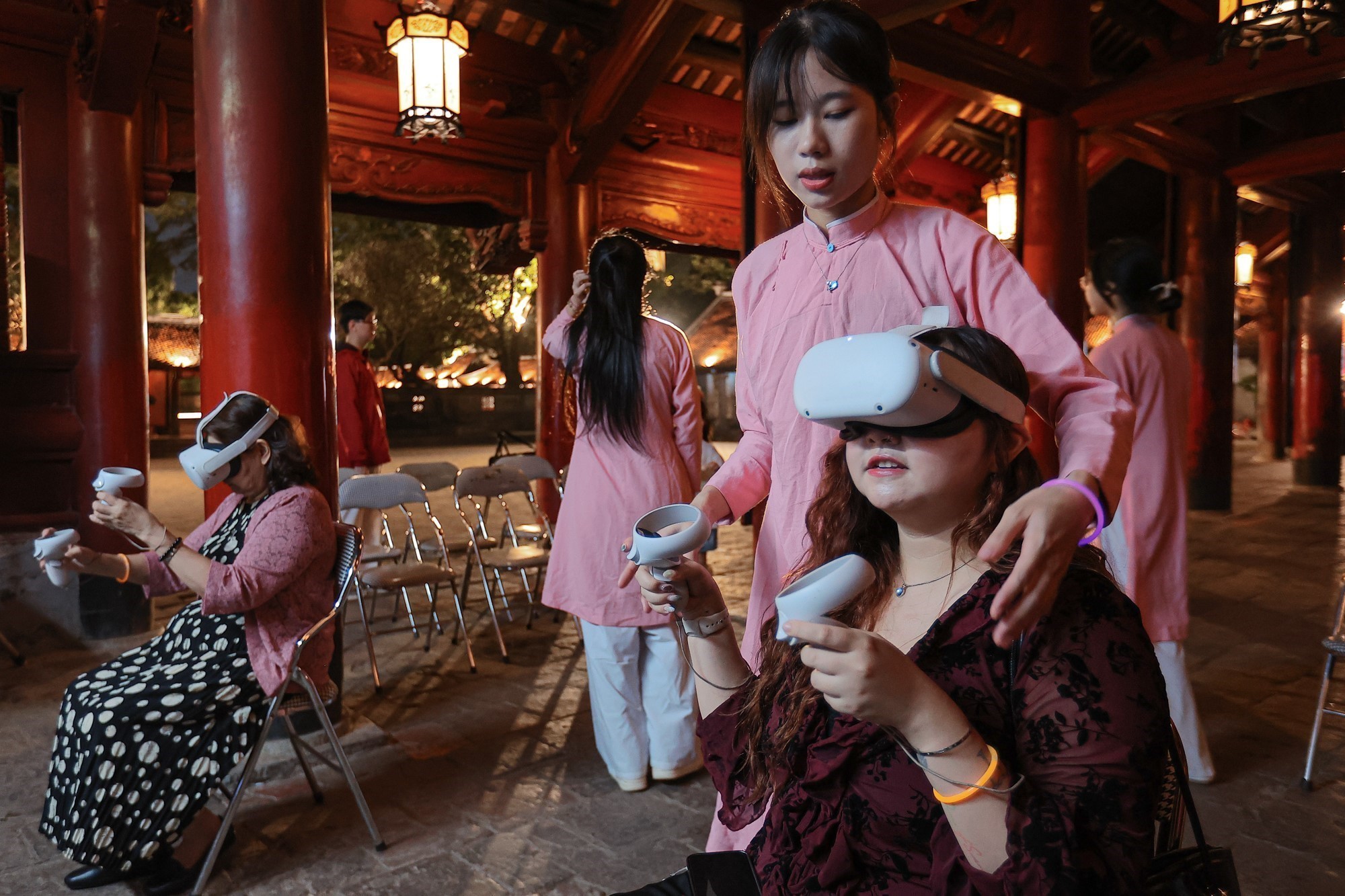 Tour đêm Văn Miếu – Quốc Tử Giám đang mở ra một cách tiếp cận mới với di sản khi kết hợp hài hòa giữa giá trị truyền thống và công nghệ số hiện đại... Ảnh: Phạm Tuấn Anh - TTXVN