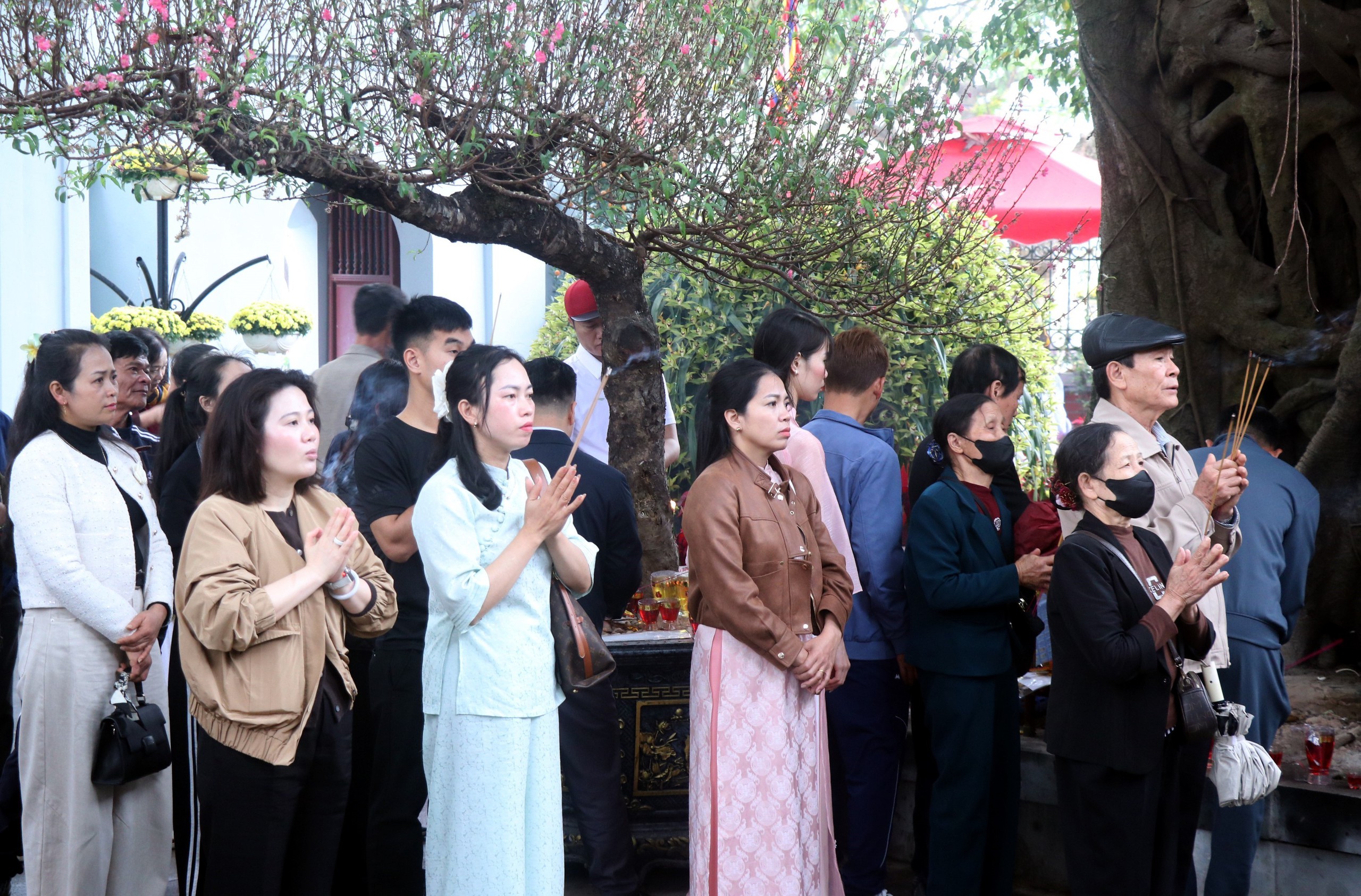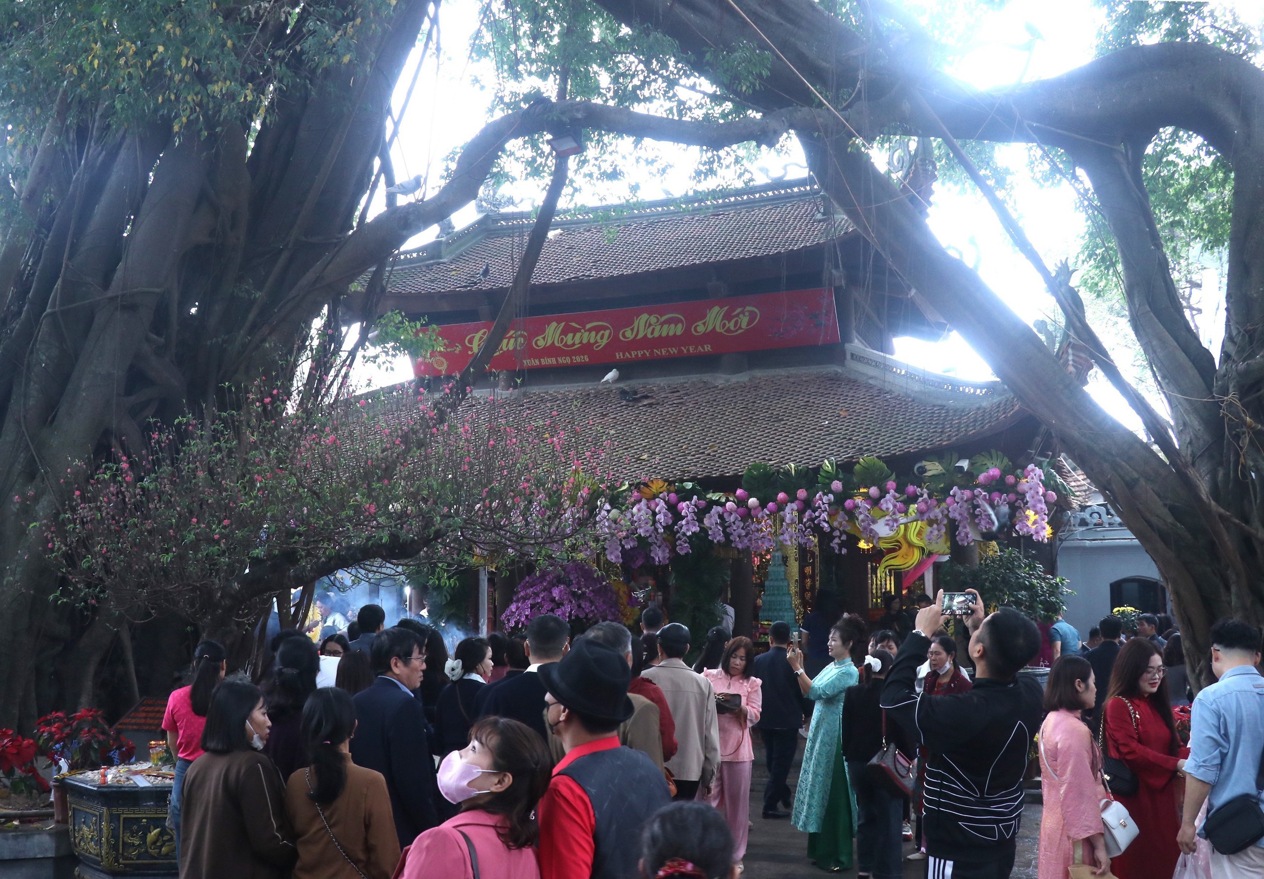 Ngay từ những ngày đầu năm mới Bính Ngọ năm 2026, các địa danh văn hóa tâm linh trên địa bàn tỉnh Hưng Yên thu hút lượng lớn người dân và du khách đến tham quan, chiêm bái. Theo thống kê, trong 9 ngày nghỉ Tết, tỉnh đã đón gần 1 triệu lượt khách, tăng gần 87% so với kỳ nghỉ Tết 2025, đây là tín hiệu lạc quan cho kinh tế di sản của địa phương. Ảnh: Đinh Văn Nhiều-TTXVN