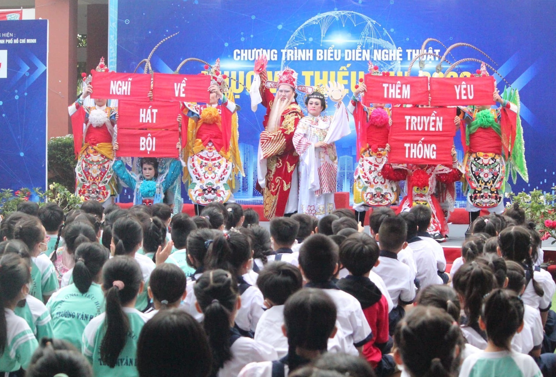 Đưa hát bội đến với học đường là một trong những nỗ lực làm sống dậy di sản tại TP.HCM. Bằng việc khơi thông các nguồn lực thể chế, đánh thức tiềm năng kinh tế di sản và chú trọng xây dựng đội ngũ nhân lực hạt nhân, Thành phố Hồ Chí Minh đang nỗ lực biến các giá trị văn hóa thành sức mạnh nội sinh bứt phá, khẳng định vị thế trung tâm văn hóa năng động, hiện đại và nghĩa tình trong lòng dòng chảy văn minh nhân loại. Ảnh: Hữu Duyên - TTXVN