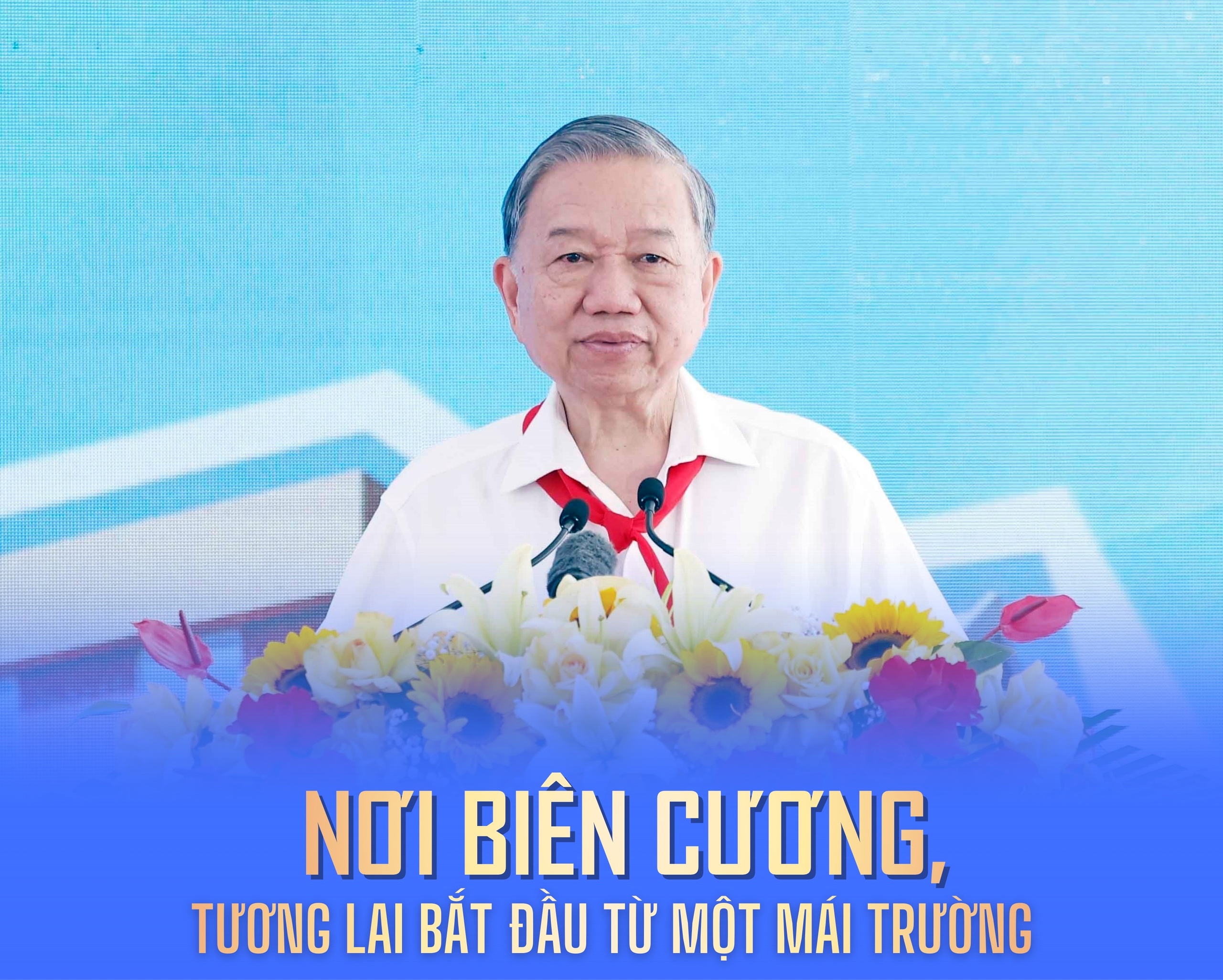 Phát biểu tại lễ khánh thành, Tổng Bí thư một lần nữa khẳng định giáo dục là quốc sách hàng đầu, là nền tảng để phát triển đất nước nhanh và bền vững. Đối với các địa bàn biên giới, giáo dục không chỉ là nâng cao dân trí, đào tạo nguồn nhân lực, mà còn là giải pháp căn cơ, lâu dài để giữ vững chủ quyền quốc gia từ gốc rễ – đó là con người, là cộng đồng dân cư gắn bó với đất đai, bản làng, đường biên, cột mốc.