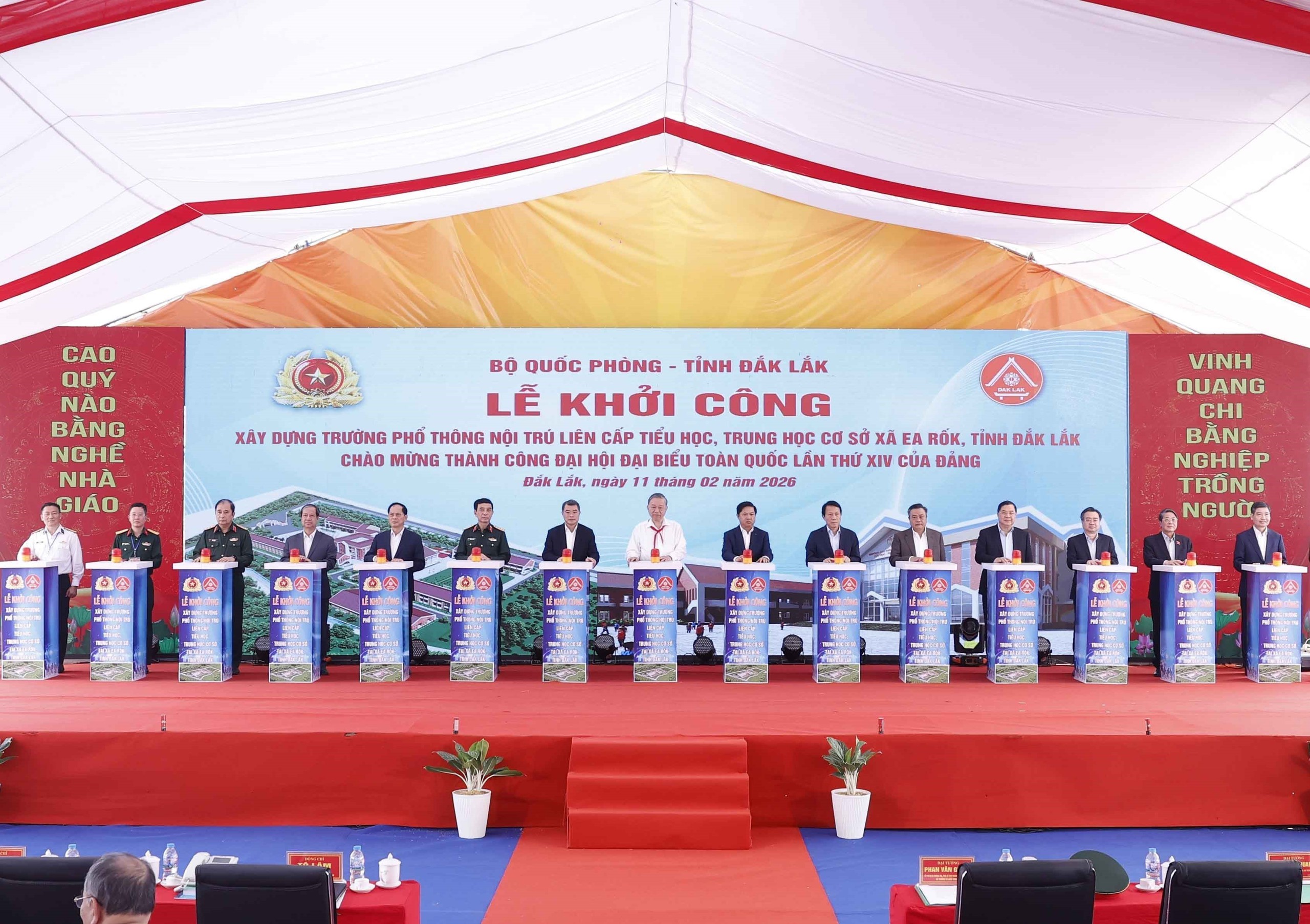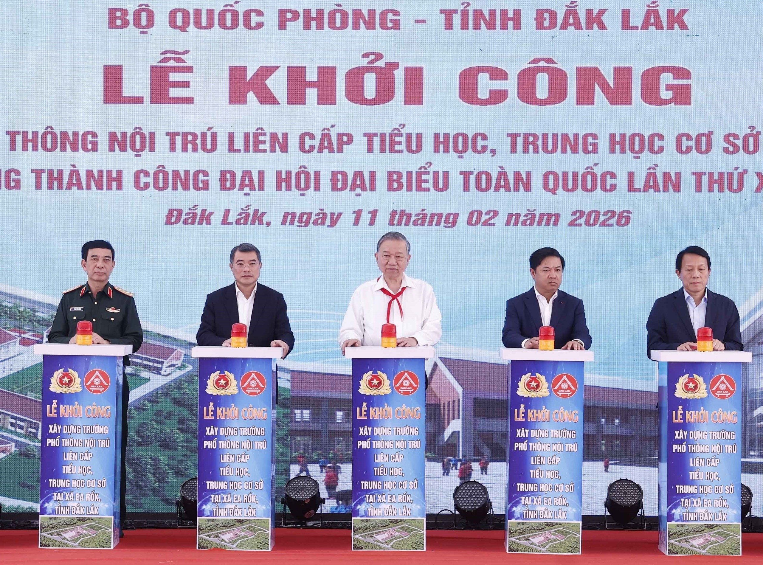 Sáng 11/2/2026, Tổng Bí thư Tô Lâm dự Lễ khởi công xây dựng Trường Phổ thông nội trú liên cấp Tiểu học, Trung học cơ sở xã Ea Rốk (tỉnh Đắk Lắk), do Bộ Tổng Tham mưu Quân đội nhân dân Việt Nam phối hợp với UBND tỉnh Đắk Lắk tổ chức