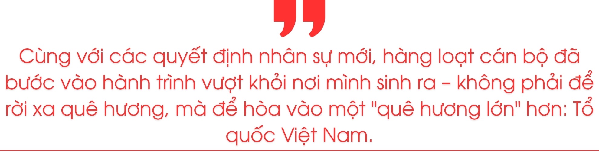 Cùng với các quyết định nhân sự mới, hàng loạt cán bộ đã bước vào hành trình vượt khỏi nơi mình sinh ra – không phải để rời xa quê hương, mà để hòa vào một "quê hương lớn" hơn: Tổ quốc Việt Nam.