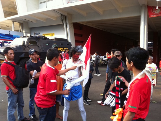 CĐV Timor Leste đã như thế và CĐV Indonesia “xịn” thậm chí còn máu mê hơn nữa, và chẳng phải ngẫu nhiên khi mỗi trận bóng được tổ chức dù ở sân Gelora Bung Karno hay Lebak Bulus thì người ta cũng thấy sự xuất hiện của đủ các sắc áo quân đội và cảnh sát Indonesia, và điều đặc biệt là ở sân nào cũng có sẵn xe bọc thép và xe chống bạo động để dự phòng. Mang theo tinh thần cảnh giác này nên có vẻ hầu như trận đấu bóng đá nào ở SEA Games 26 thì BTC cũng huy động tối đa lực lượng làm nhiệm vụ.