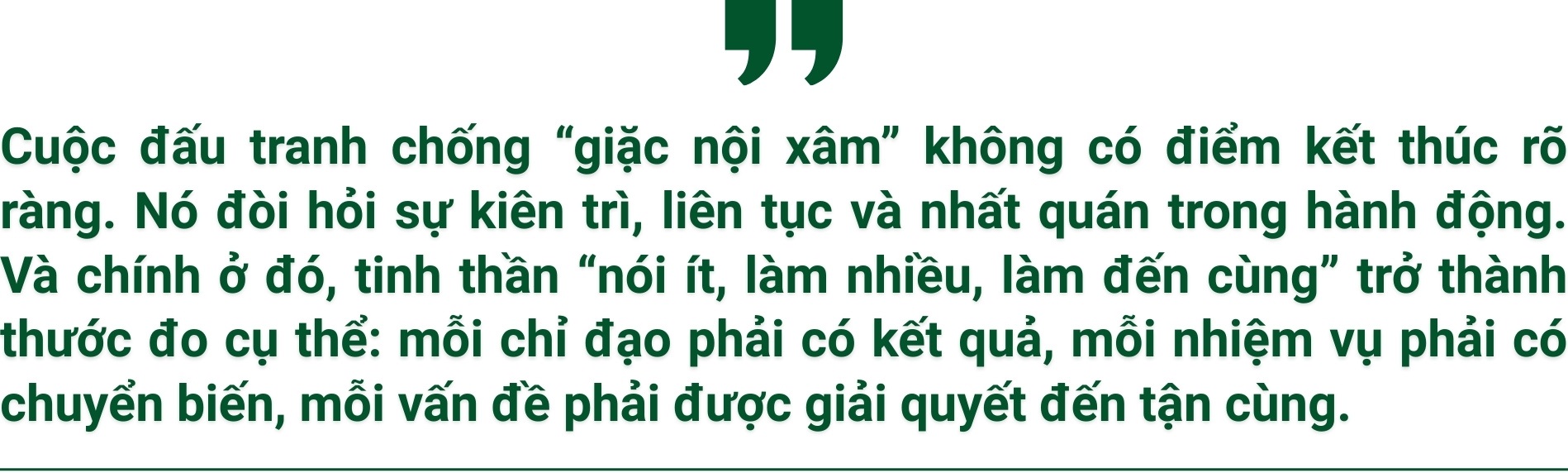 Thông điệp "nói ít, làm nhiều, làm đến cùng" được Tổng Bí thư Tô Lâm nhấn mạnh không chỉ là một yêu cầu về phương pháp làm việc, mà là một chuẩn mực hành động trong giai đoạn mới của cuộc đấu tranh phòng, chống tham nhũng, lãng phí, tiêu cực. Đó là cách để biến quyết tâm chính trị thành những kết quả cụ thể – thứ mà xã hội có thể nhìn thấy, cảm nhận và tin tưởng.