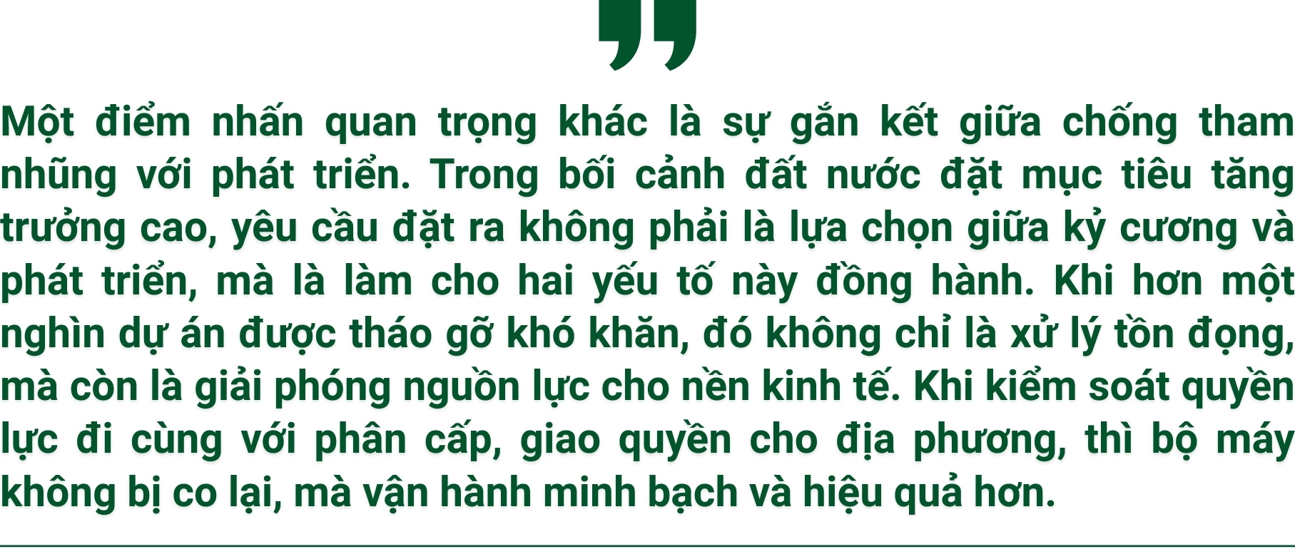 Chống tham nhũng, vì thế, không chỉ là "làm sạch", mà còn là "khai thông". Không chỉ là loại bỏ cái sai, mà còn tạo điều kiện để cái đúng được vận hành thông suốt. Ở tầng sâu hơn, đó là cách để xây dựng một môi trường phát triển lành mạnh – nơi cơ hội không bị bóp méo, nguồn lực không bị thất thoát và niềm tin trở thành một giá trị thực sự.