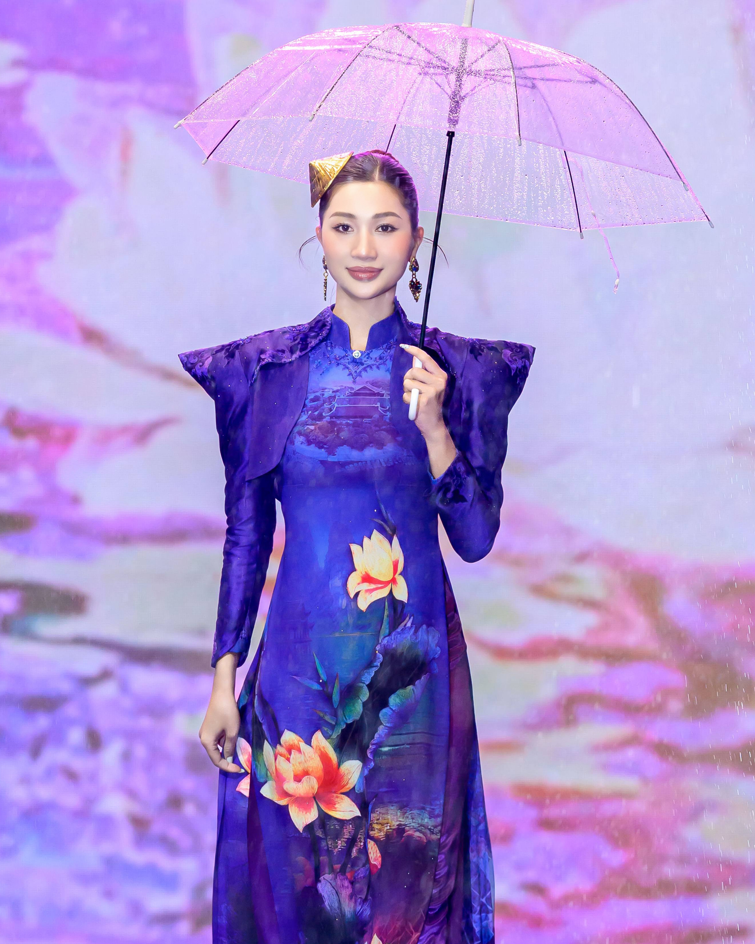 Bộ sưu tập "Liên Hoa Bảo Việt" lấy cảm hứng từ hoa sen - biểu tượng thanh khiết và bền bỉ của người Việt. Họa tiết trong từng tà áo được kết nối với hình ảnh Hoàng thành Thăng Long, Văn Miếu - Quốc Tử Giám, Cố đô Huế, Thánh địa Mỹ Sơn và phố cổ Hội An, tạo nên bức tranh giao hòa giữa truyền thống và hiện đại.