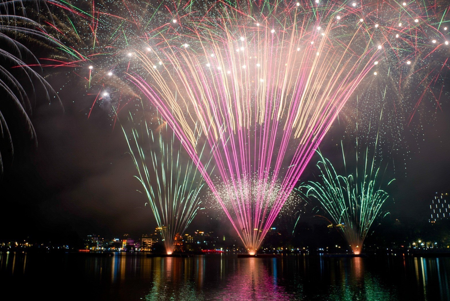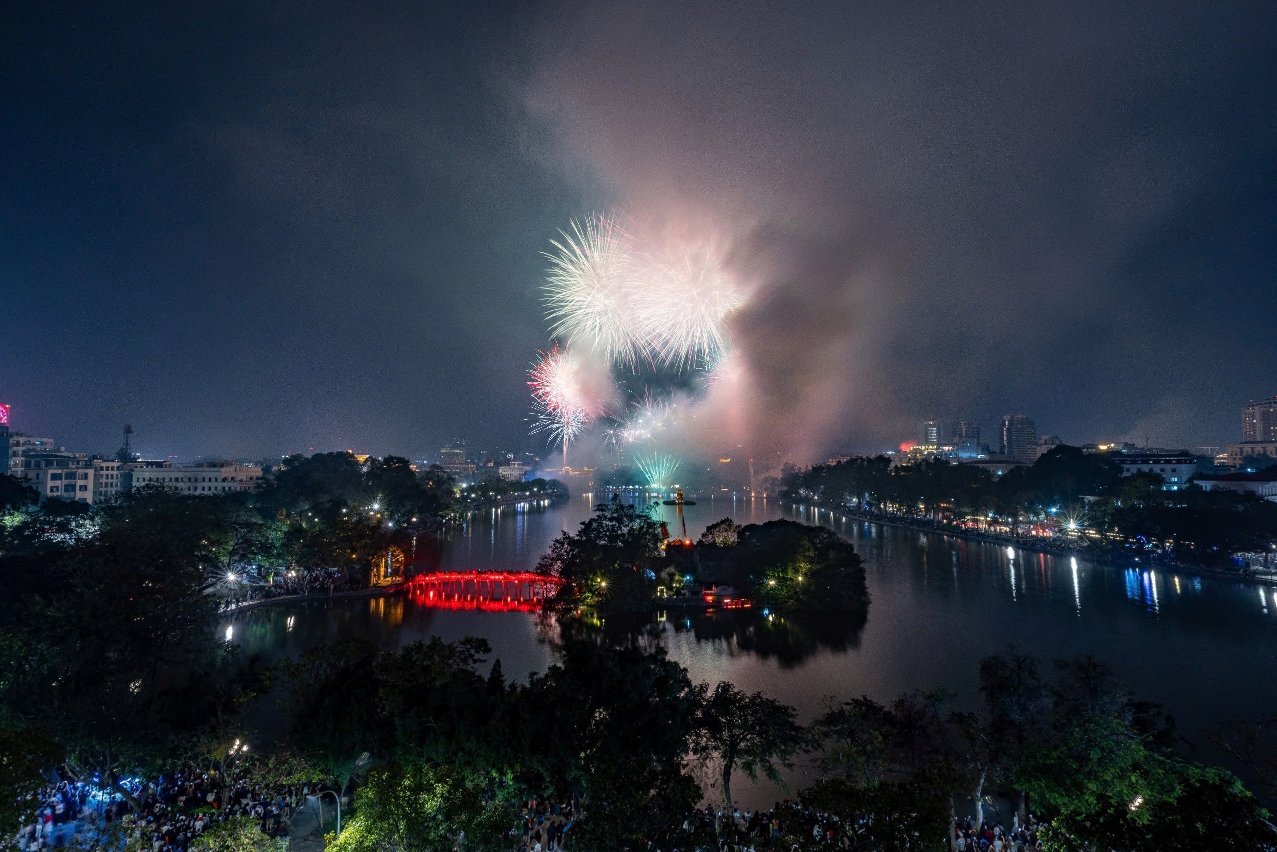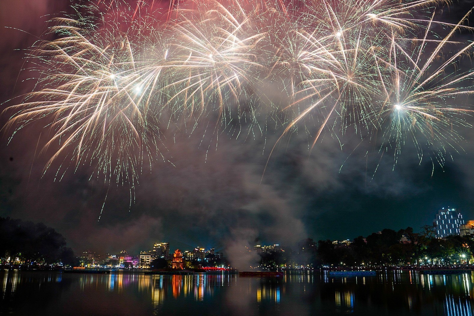 Màn pháo hoa rực rỡ tại hồ Hoàn Kiếm