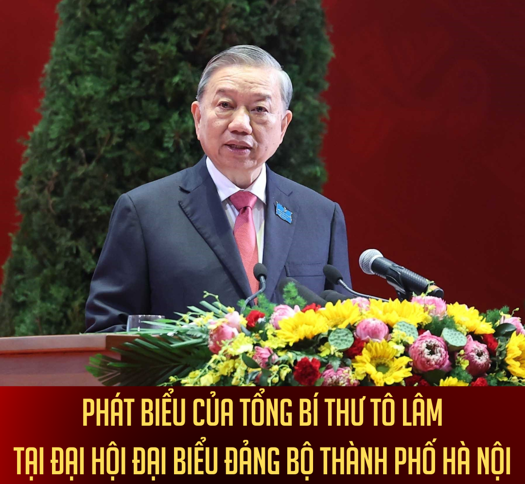Tổng Bí thư Tô Lâm phát biểu chỉ đạo Đại hội đại biểu Đảng bộ thành phố Hà Nội lần thứ 18 . Ảnh: Thống Nhất-TTXVN