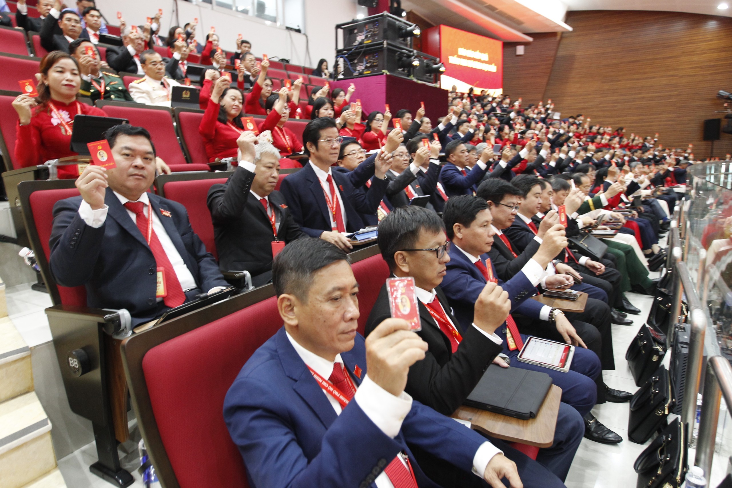 Các đại biểu biểu quyết thông qua phương hướng nhiệm vụ nhiệm kỳ 2025-2030. Ảnh: Thanh Vũ-TTXVN