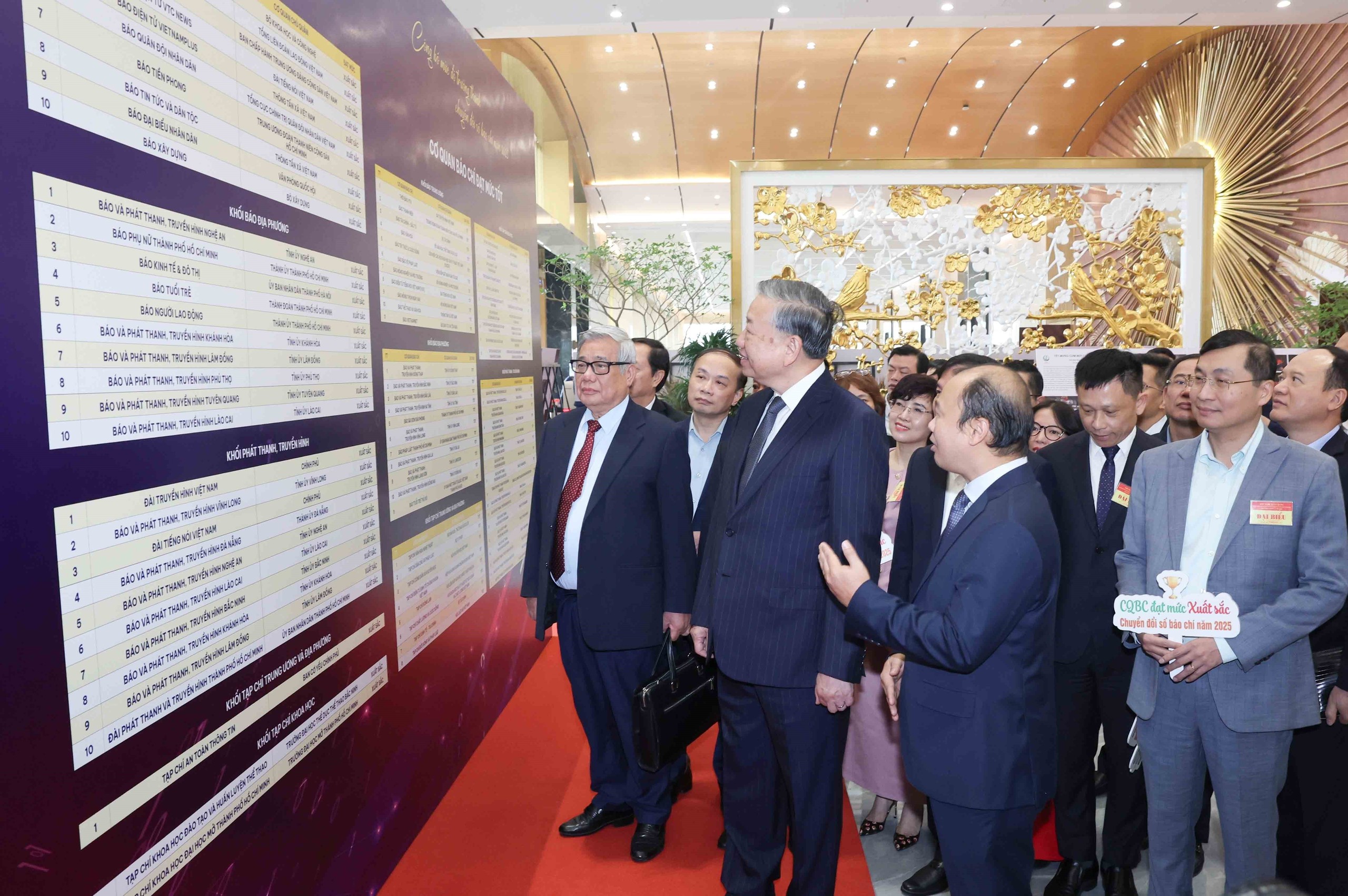 Tổng Bí thư Tô Lâm tham quan trưng bày chuyển đổi số của ngành Tuyên giáo và Dân vận. Ảnh: Phương Hoa - TTXVN