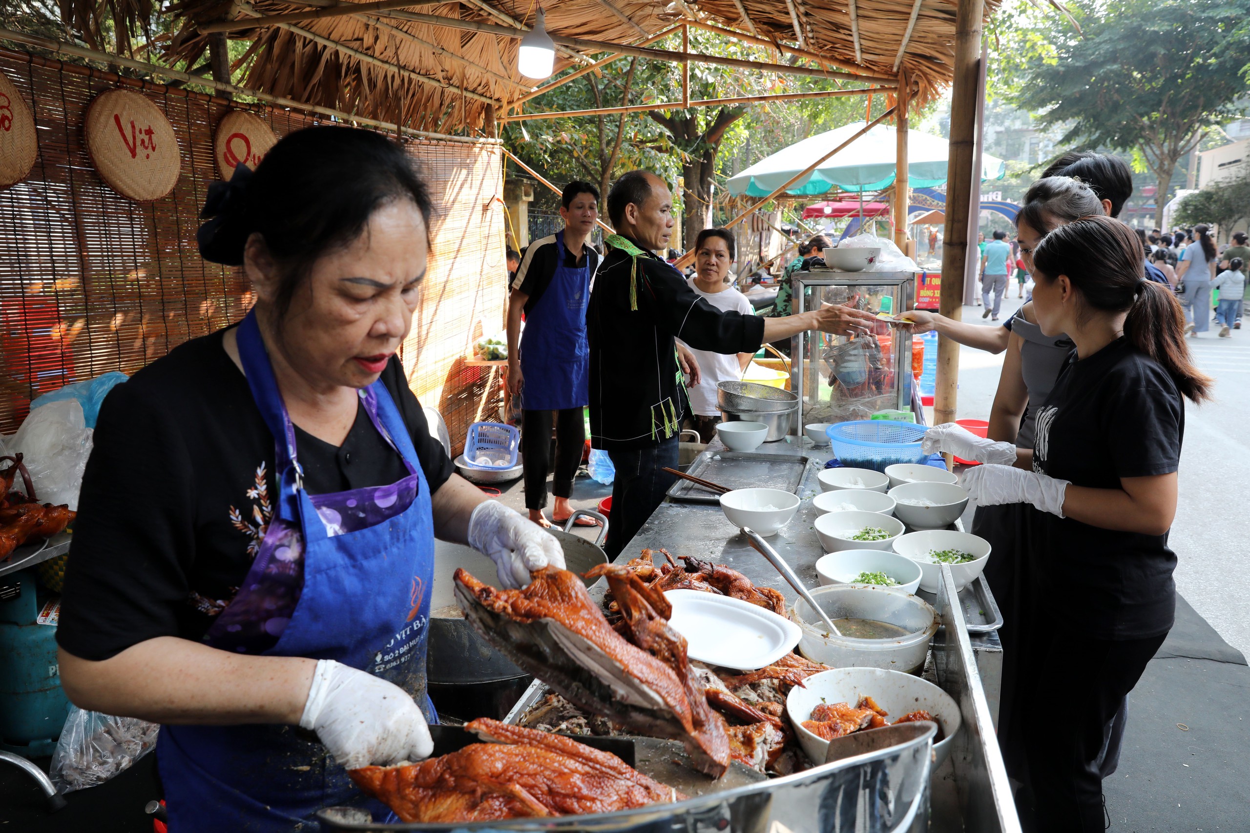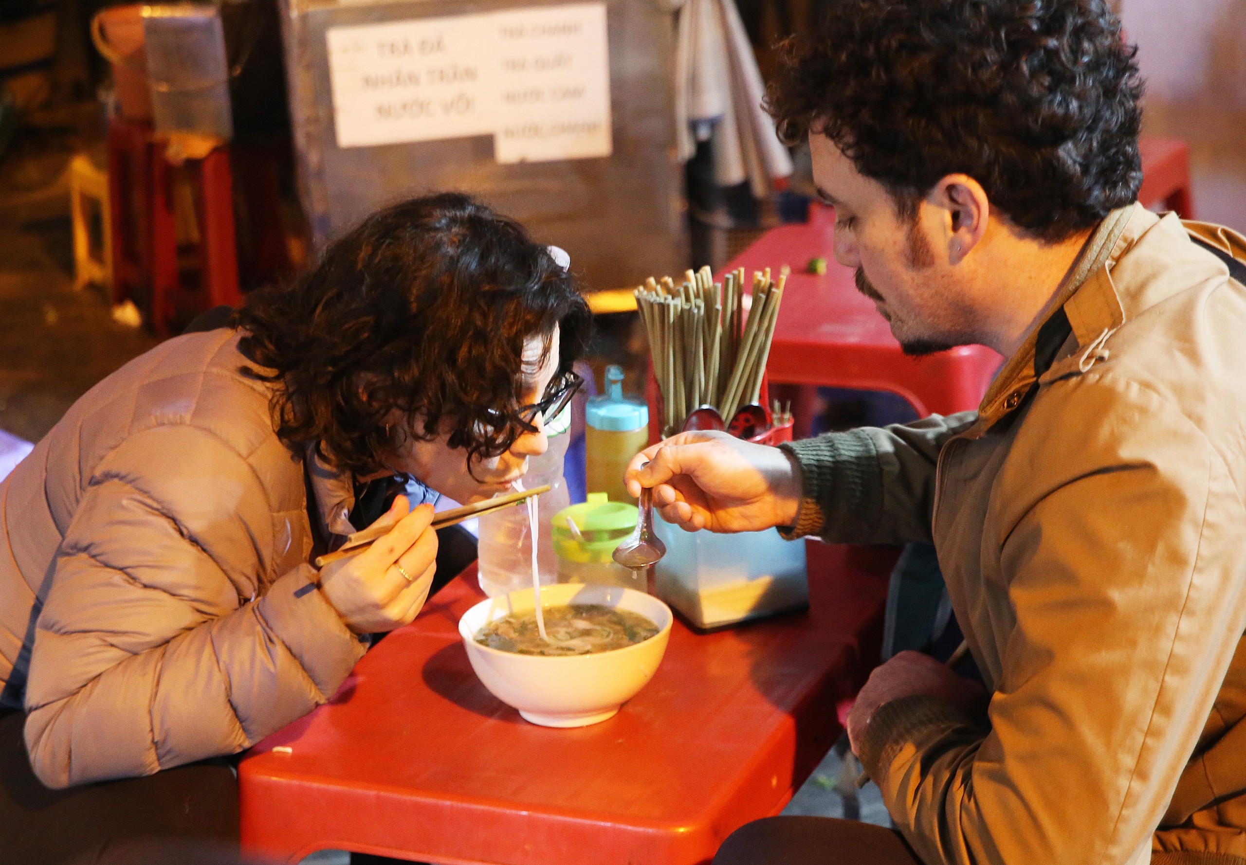 Theo TS Trần Hữu Sơn, mỗi biểu tượng là một “cửa ngõ” dẫn khách vào hệ sinh thái văn hóa - kinh tế. Trong ảnh: Du khách quốc tế thỏa sức lựa chọn ẩm thực Việt Nam - từ phở truyền thống đến bánh mì, bún chả, bánh cuốn… những món nhất định phải thử khi tới Hà Nội