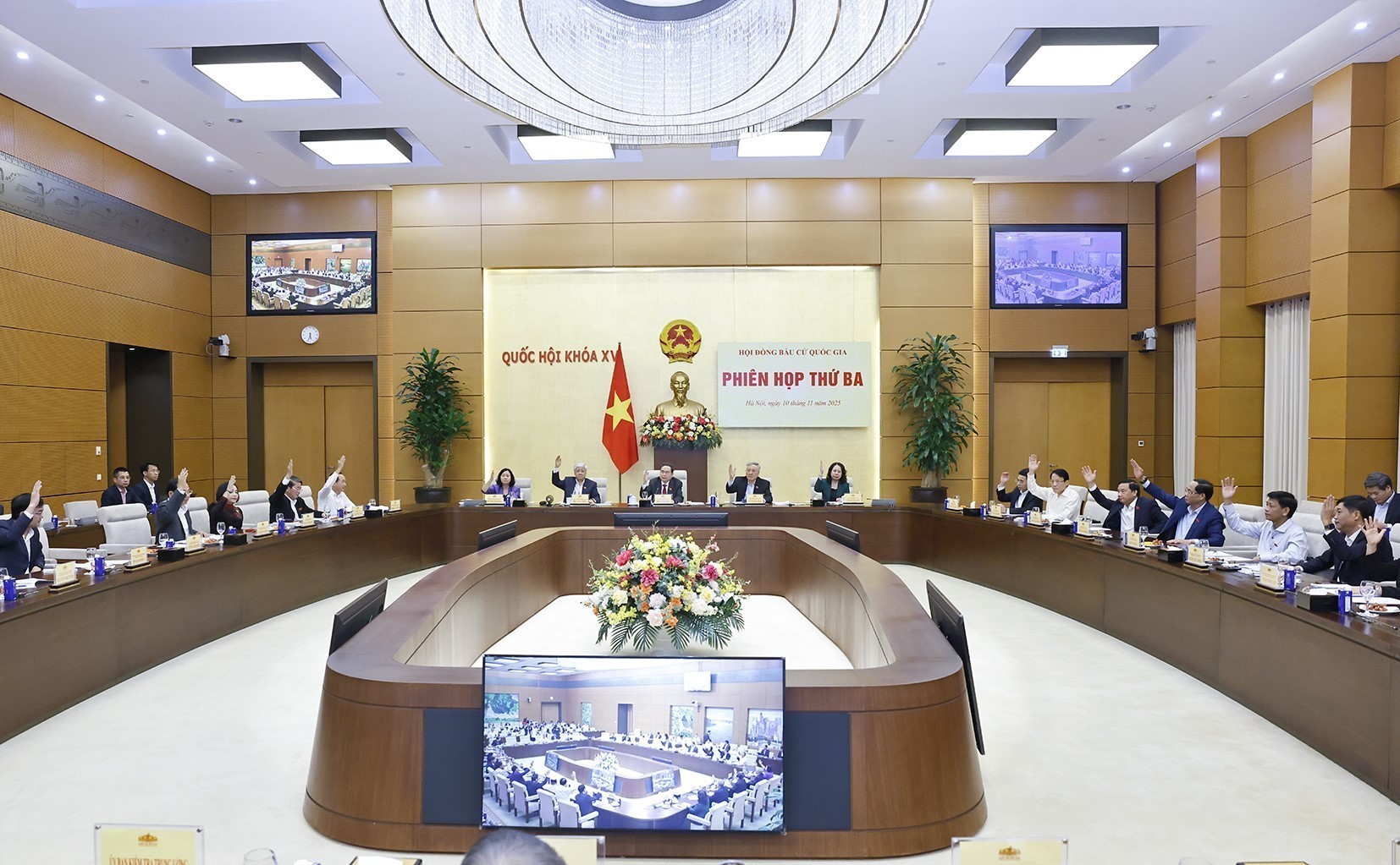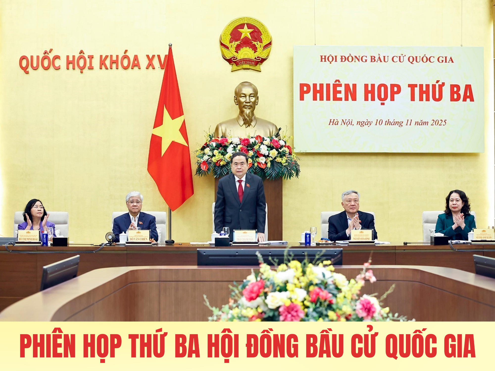 Chiều 10/11/2025, tại Nhà Quốc hội, Hội đồng Bầu cử quốc gia tổ chức Phiên họp thứ ba. Ủy viên Bộ Chính trị, Chủ tịch Quốc hội Trần Thanh Mẫn, Chủ tịch Hội đồng Bầu cử quốc gia chủ trì phiên họp.