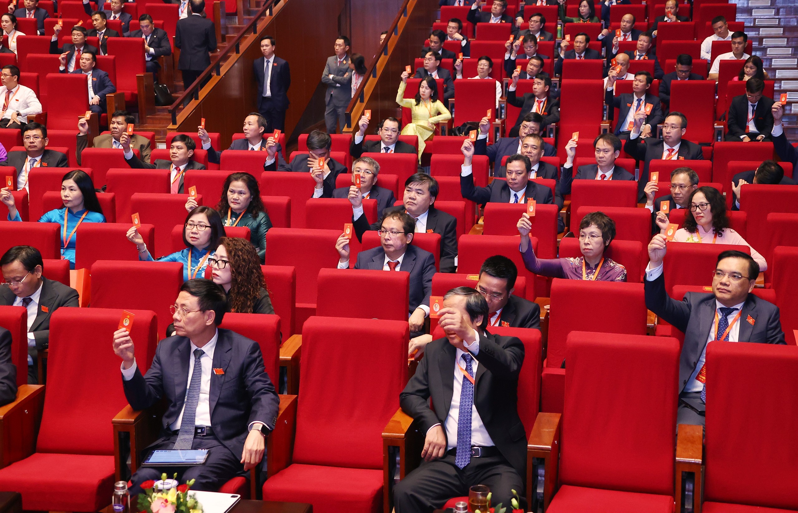 Thủ tướng Phạm Minh Chính và các đại biểu dự Đại hội biểu quyết thông qua Chương trình làm việc của Đại hội