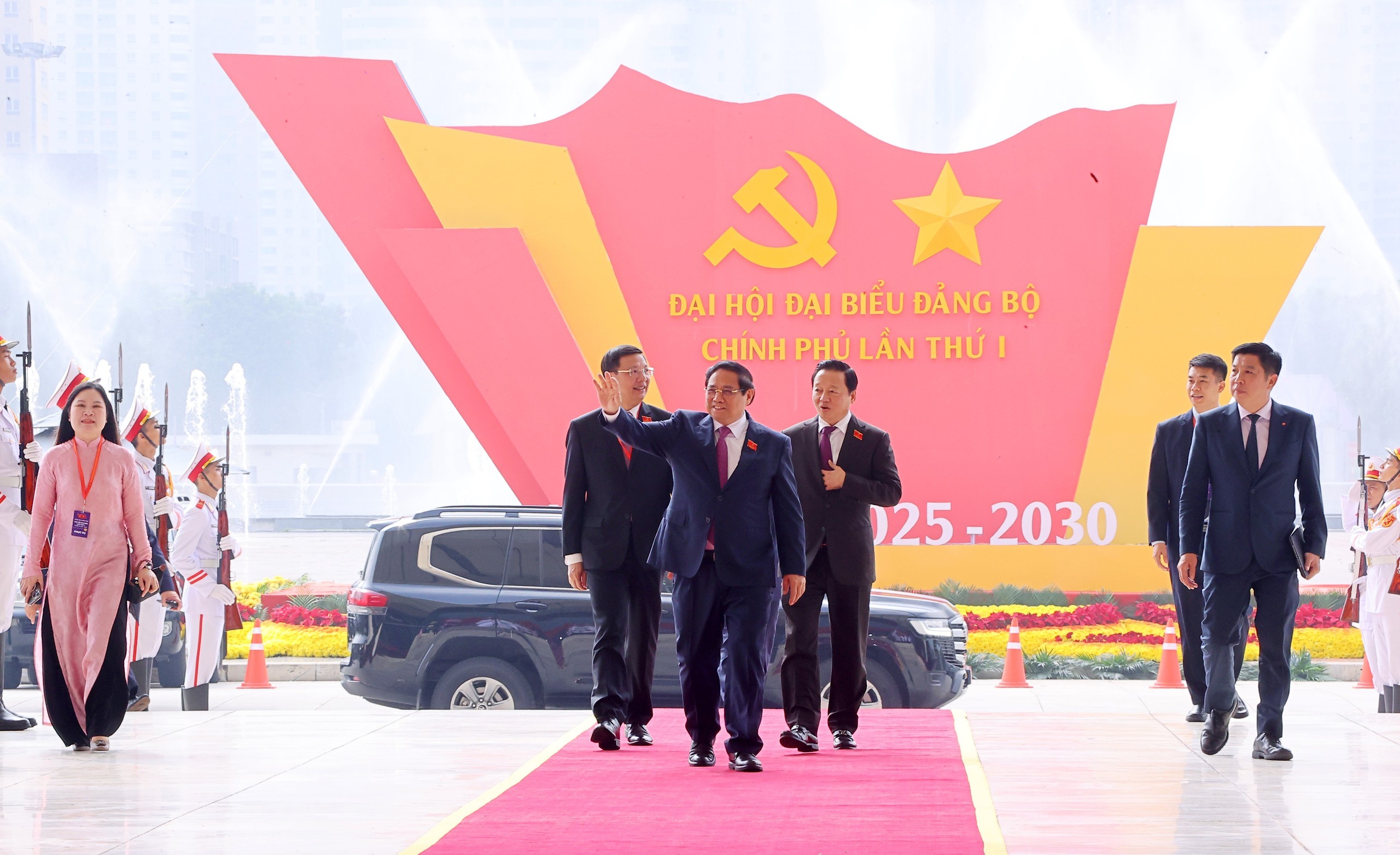 Đồng chí Phạm Minh Chính, Ủy viên Bộ Chính trị, Bí thư Đảng ủy, Thủ tướng Chính phủ và các Phó Thủ tướng đến chủ trì Phiên trù bị Đại hội đại biểu Đảng bộ Chính phủ lần thứ nhất, nhiệm kỳ 2025-2030