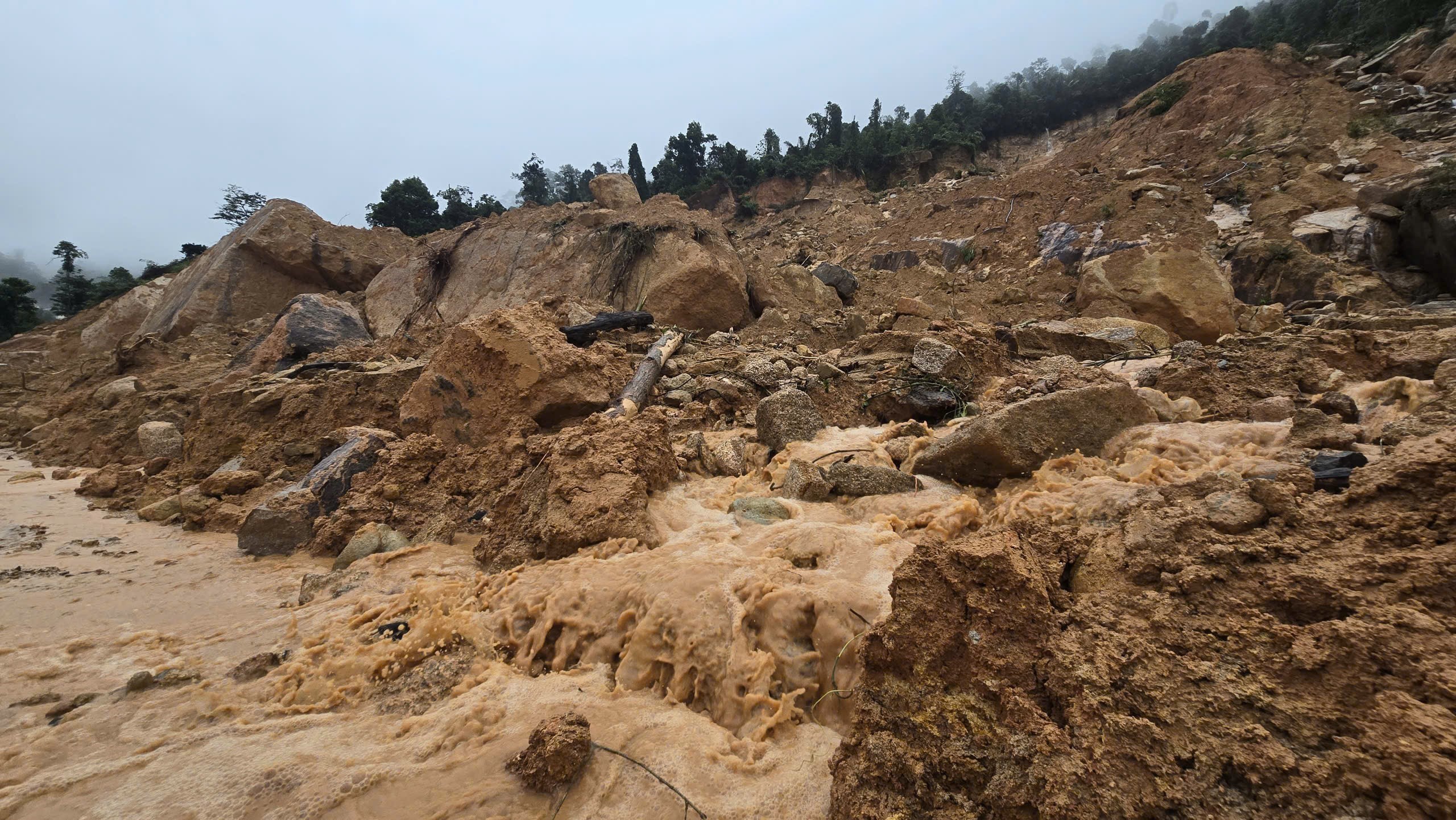 Ghi nhận của phóng viên khi có mặt tại hiện trường khu vực sạt lở trên đèo Khánh Lê thời tiết có mưa rất to. Trên đèo vẫn phát sinh thêm các điểm sạt lở mới, khối lượng đất đá tràn xuống mặt đường ước hàng trăm m3. Lực lượng chức năng của xã Nam Khánh Vĩnh đã tổ chức chốt chặn 24/24 giờ cách khu vực sạt lở khoảng 2km; tuyệt đối không cho người và phương tiện di chuyển về phía đèo Khánh Lê.