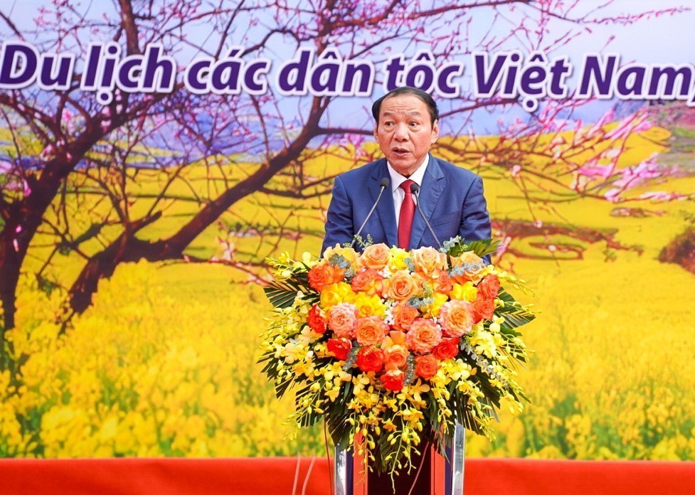 Bộ trưởng Bộ Văn hoá, Thể thao và Du lịch Nguyễn Văn Hùng phát biểu. Ảnh: Khánh Hoà - TTXVN