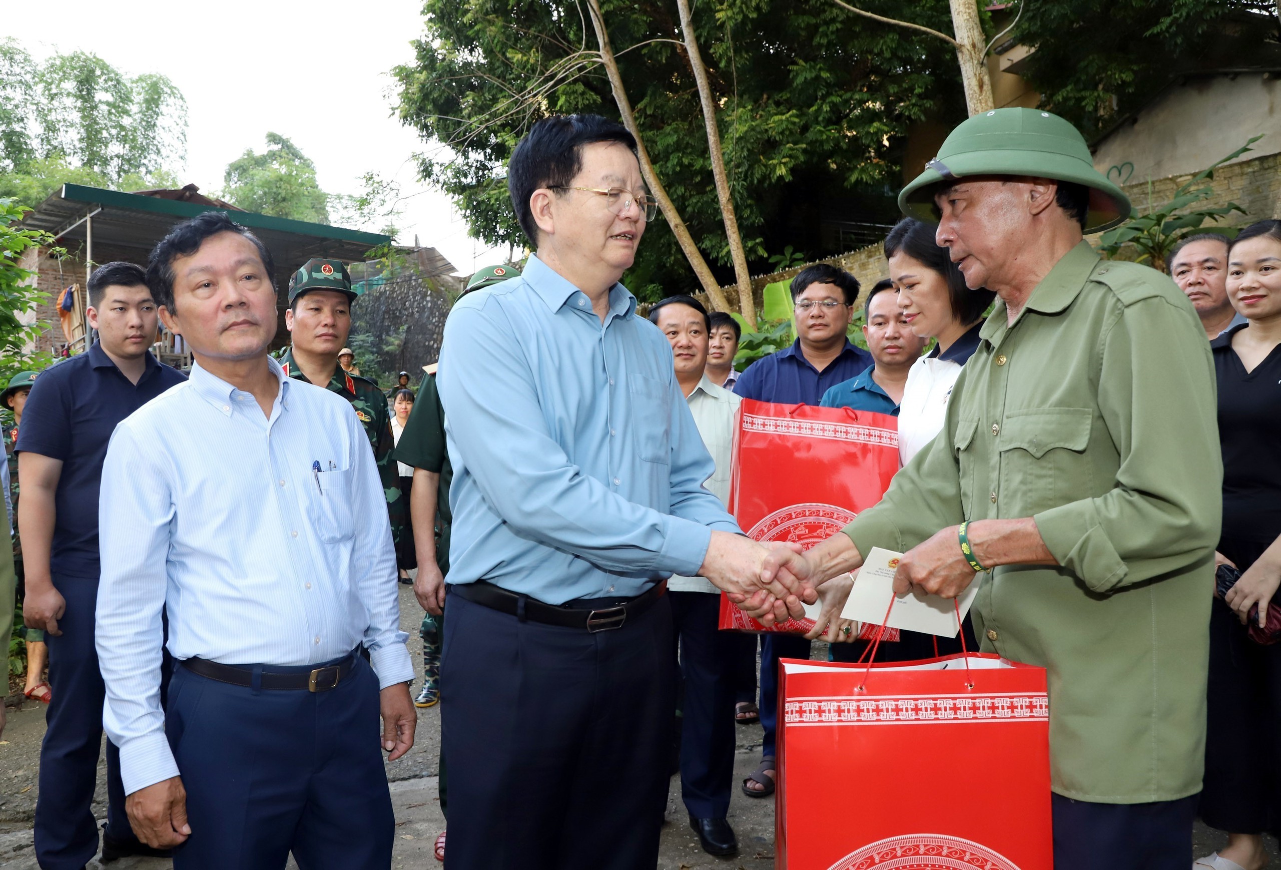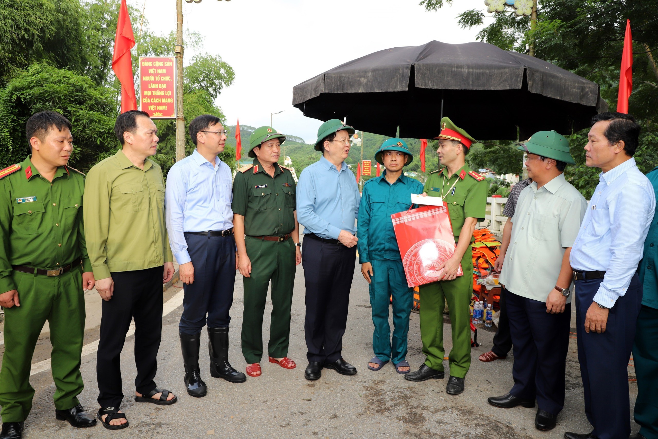 Phó Thủ tướng Mai Văn Chính tặng quà lực lượng chức năng làm nhiệm vụ đảm bảo an toàn tại cầu Chiêm Hóa