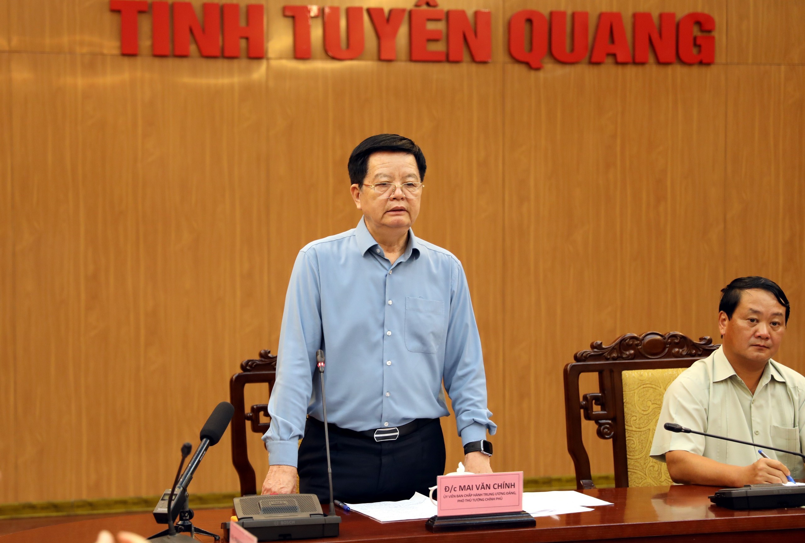 Phát biểu tại buổi làm việc, Phó Thủ tướng Mai Văn Chính chia sẻ sâu sắc với những mất mát về người và tài sản mà nhân dân Tuyên Quang đang phải gánh chịu; đồng thời biểu dương tinh thần chủ động, quyết liệt của cấp ủy, chính quyền, lực lượng vũ trang và nhân dân trong tỉnh đối với công tác ứng phó thiên tai thời gian qua.