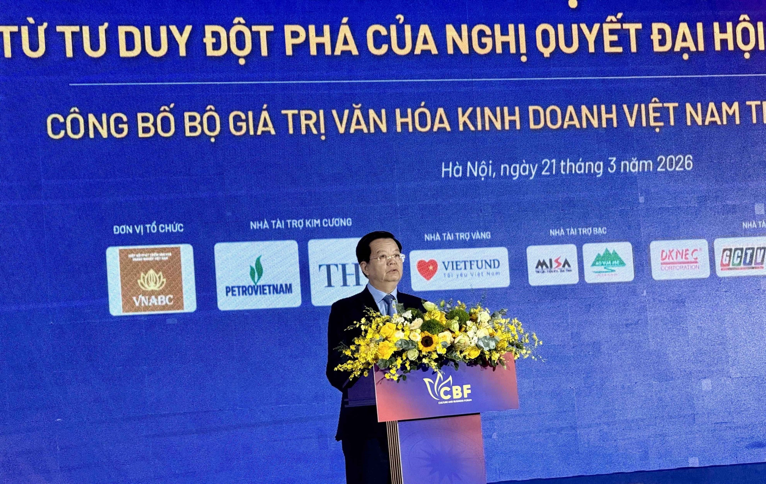 Chiều 21/3, Phó Thủ tướng Chính phủ Mai Văn Chính dự và phát biểu chỉ đạo tại Diễn đàn quốc gia thường niên “Văn hóa với doanh nghiệp” năm 2026 với chủ đề “Văn hóa kinh doanh Việt Nam - Hệ giá trị mới từ tư duy đột phá của Nghị quyết Đại hội Đảng lần thứ XIV” tại Hà Nội.