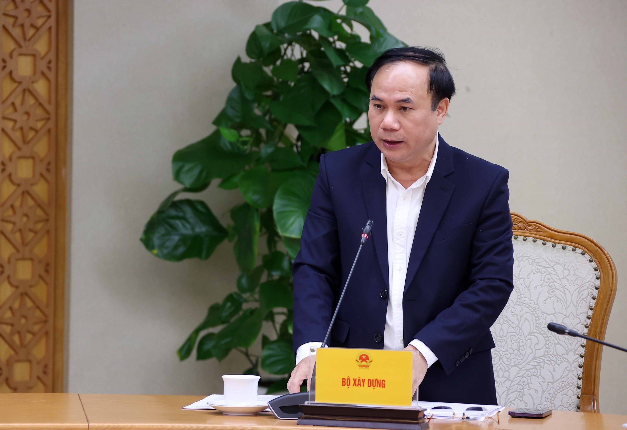 Thứ trưởng Bộ Xây dựng Nguyễn Văn Sinh báo cáo tại cuộc họp. Ảnh: Văn Điệp – TTXVN