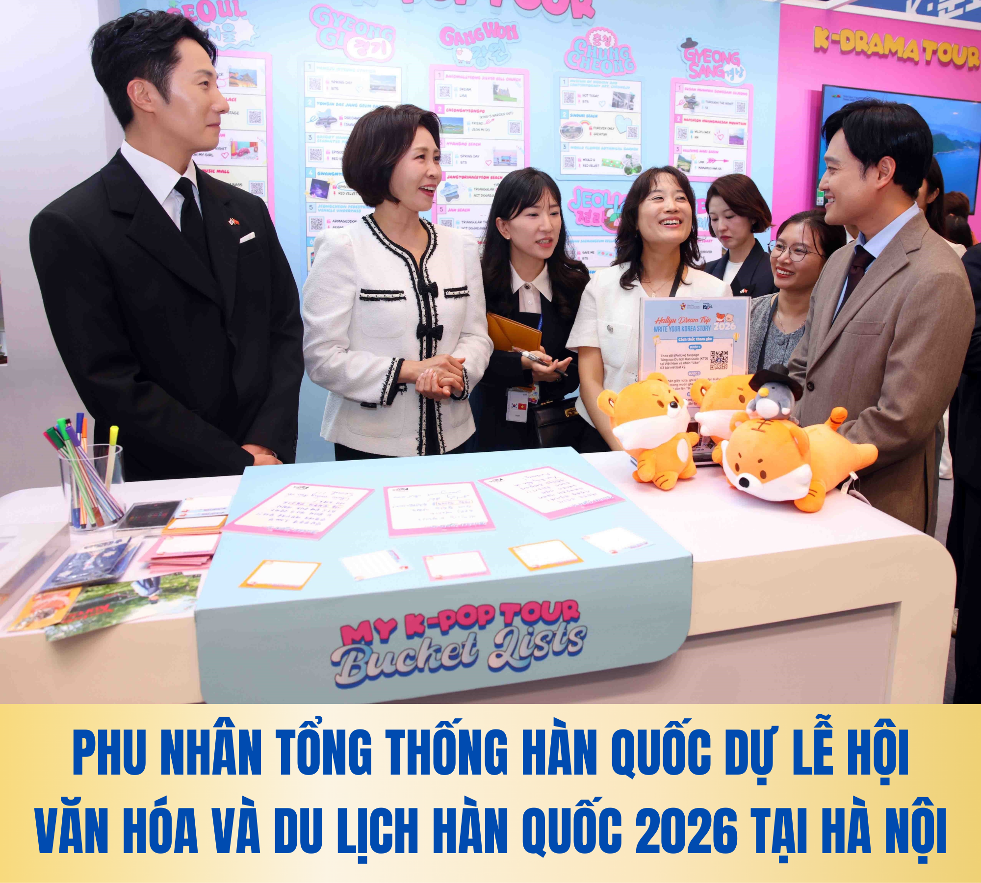 Chiều 23/4/2026, Phu nhân Tổng thống Hàn Quốc Lee Jae Myung, bà Kim Hae Kyung tham dự Lễ hội Văn hóa và Du lịch Hàn Quốc 2026 tại Hà Nội do Tổng cục Du lịch Hàn Quốc tại Việt Nam và Trung tâm Văn hóa Hàn Quốc tại Việt Nam phối hợp tổ chức.