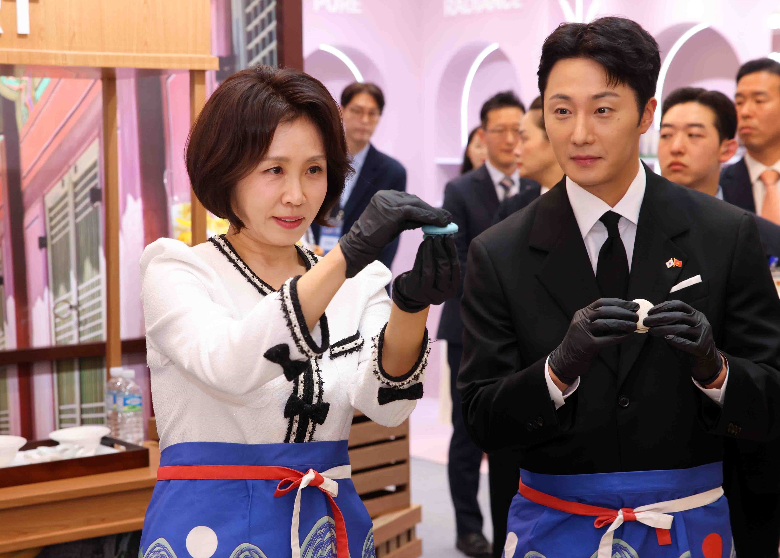 Phu nhân Tổng thống Hàn Quốc Lee Jae Myung, bà Kim Hae Kyung tại Lễ hội Văn hóa và Du lịch Hàn Quốc 2026 tại Hà Nội. Ảnh: Phạm Kiên - TTXVN