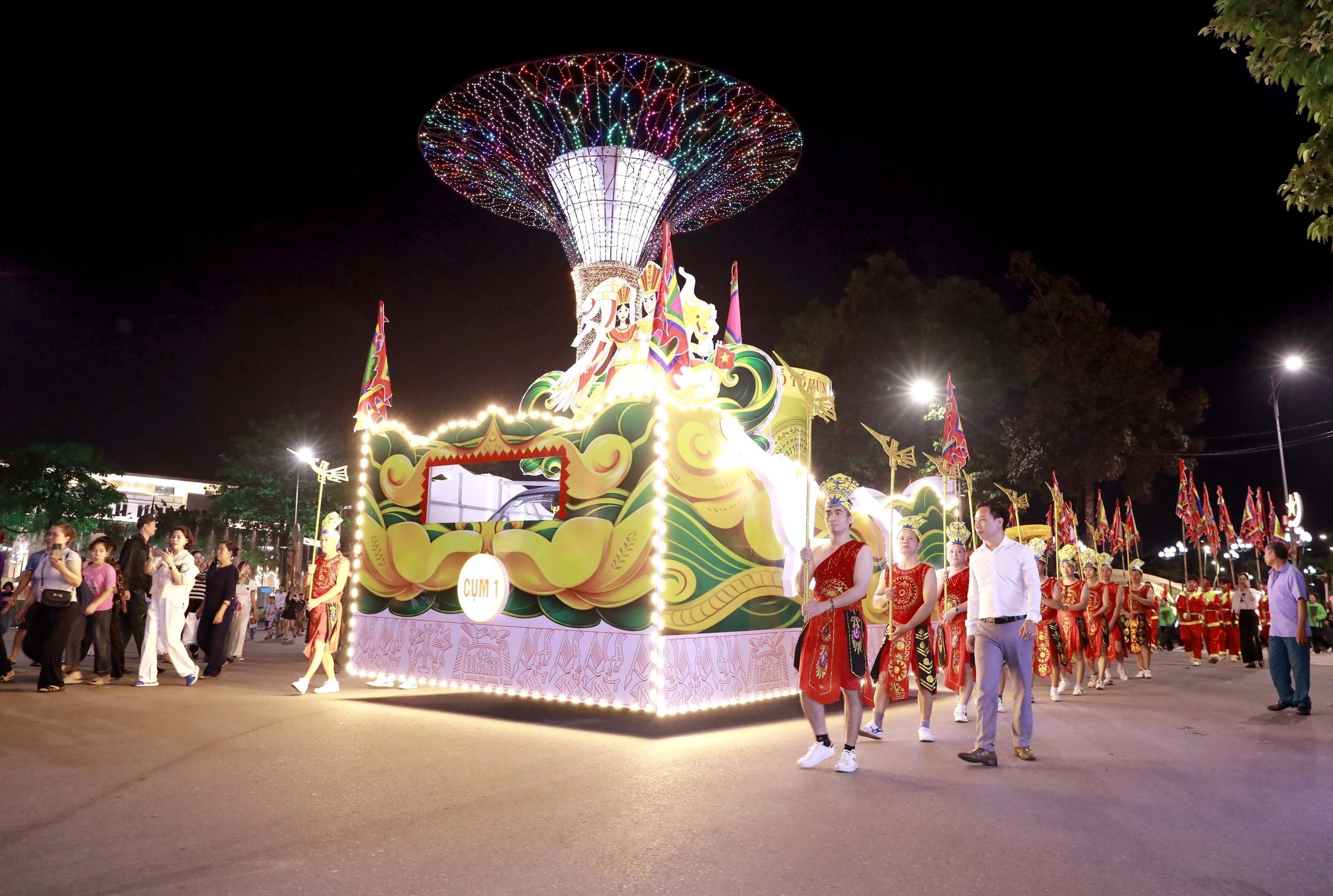 Lễ hội quy tụ 18 đoàn diễn với hơn 1.000 diễn viên quần chúng, mang đến những màn trình diễn nghệ thuật dân gian đặc sắc gắn với tín ngưỡng thờ cúng Hùng Vương và các di sản văn hóa vùng miền. Điểm nhấn là các xe mô hình biểu tượng tiêu biểu của địa phương, kết hợp âm vang trống hội, hát Xoan, diễn xướng cồng chiêng và múa Mo Mường.