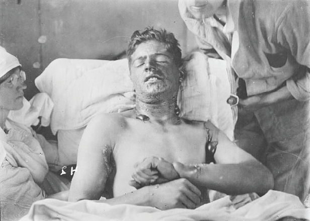 Wilfred Owen, nhà thơ kiêm quân nhân người Anh, đã từng mô tả về nỗi kinh hoàng của chiến tranh hóa học trong tác phẩm nổi tiếng nhất của ông là Dulce Et Decorum Est. “Nếu anh có thể nghe thấy, trong từng cú giãy, máu tươi/ Tuôn trào khỏi miệng, từ những lá phổi đã hỏng" - ông viết.