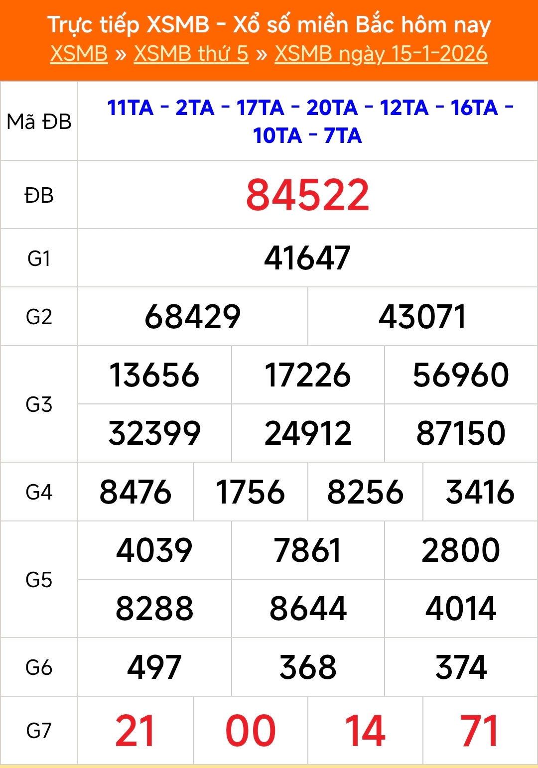 XSMB 15/1: Kết quả Xổ số miền Bắc hôm nay thứ Năm ngày 15/1/2026 quay thưởng lúc 18h10 được trực tiếp cập nhật nhanh nhất, chính xác nhất trên Thethaovanhoa.vn.