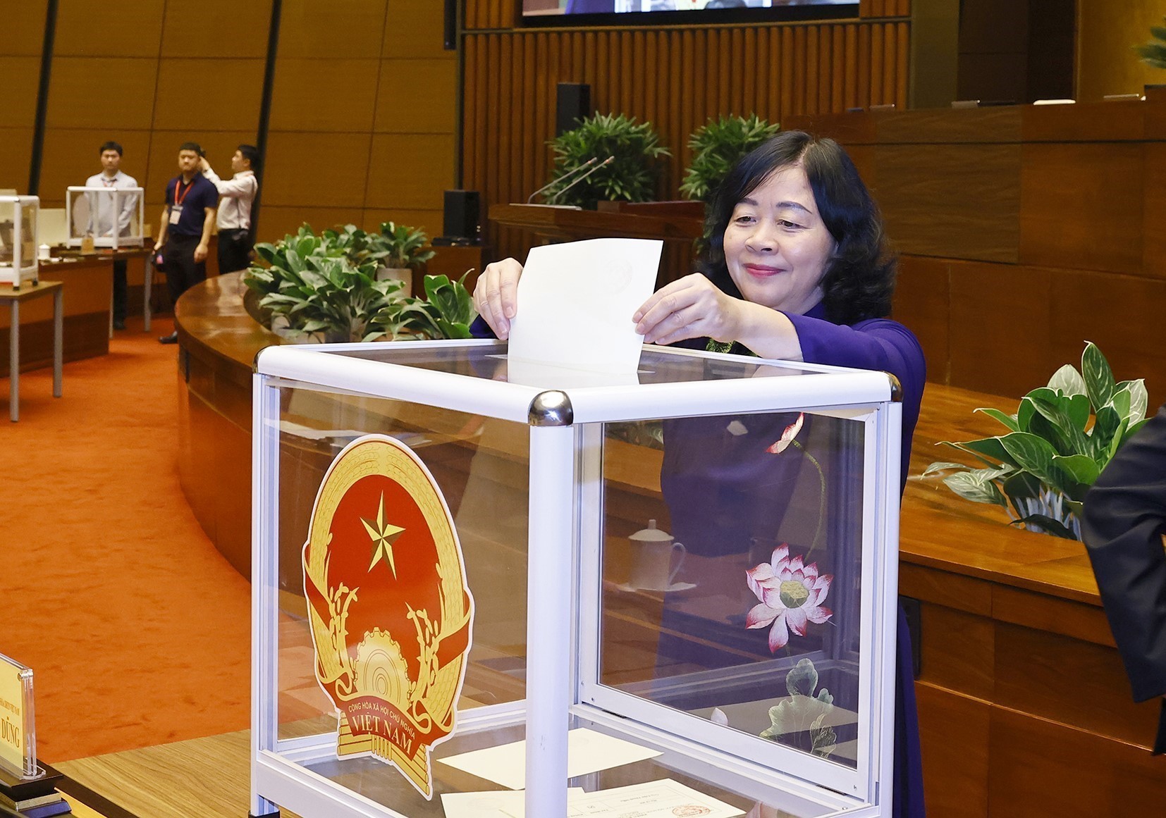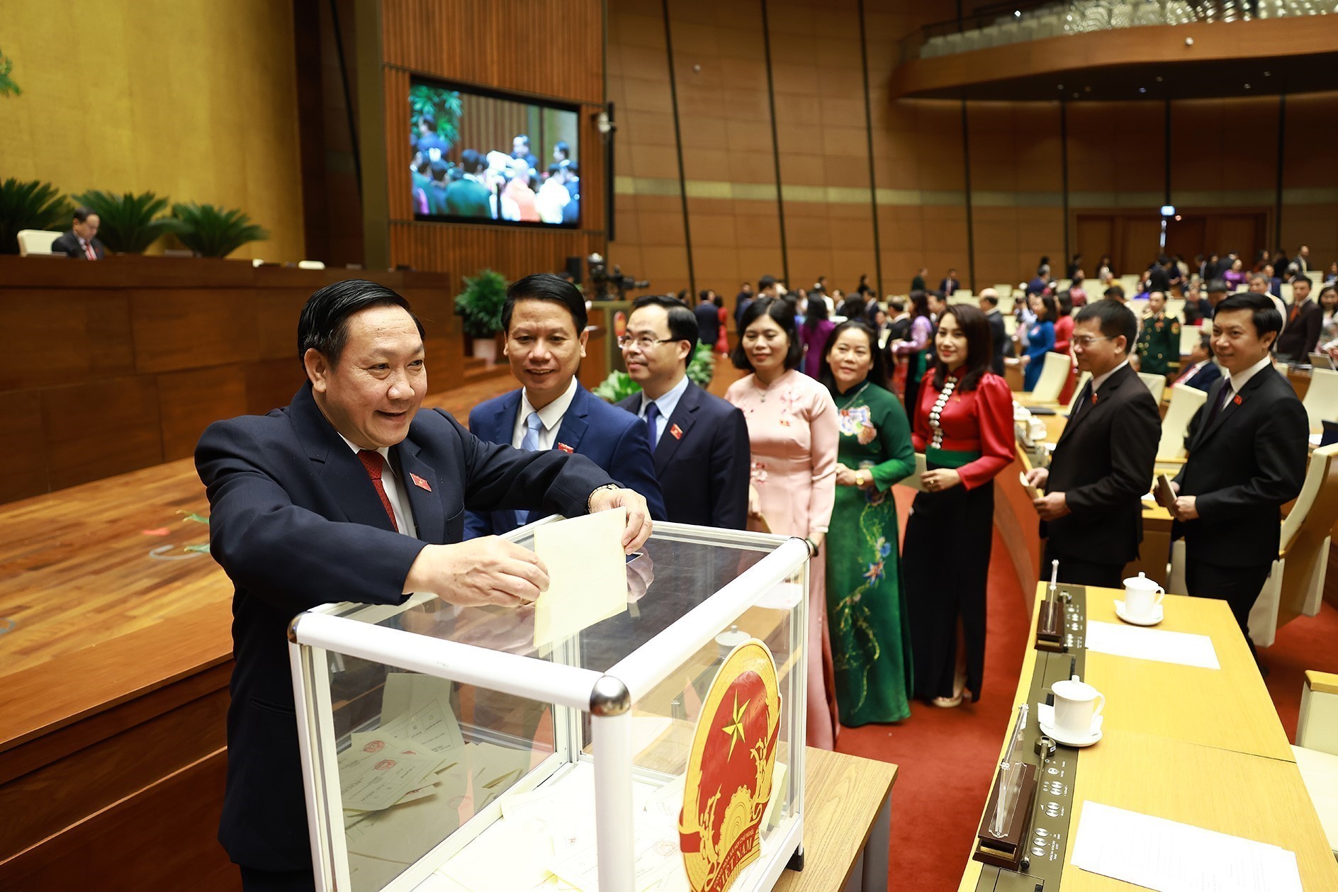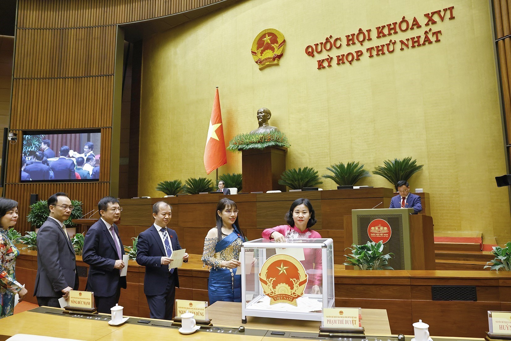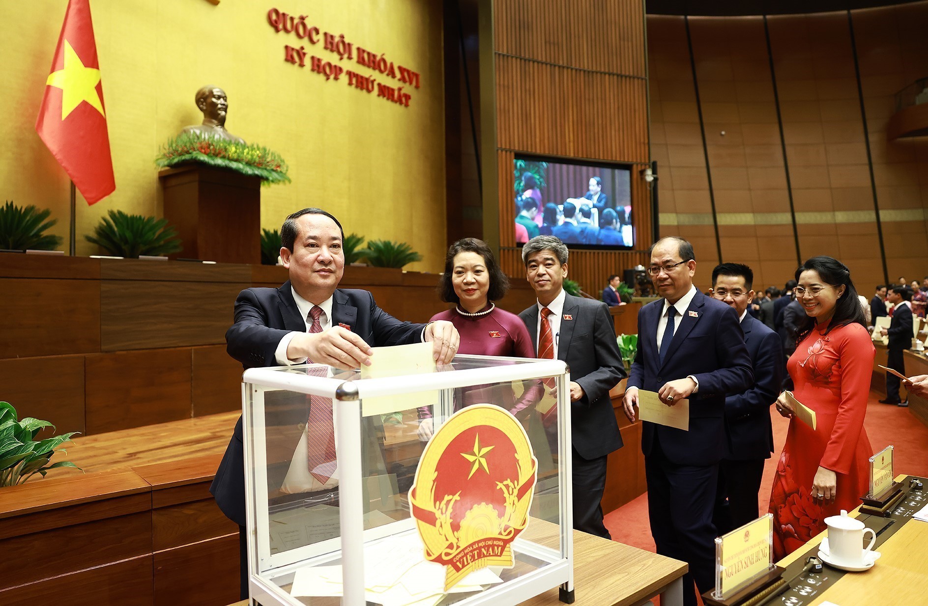 Đại biểu Quốc hội bỏ phiếu bầu Chủ tịch Quốc hội khoá XVI. Ảnh: Dương Giang-TTXVN