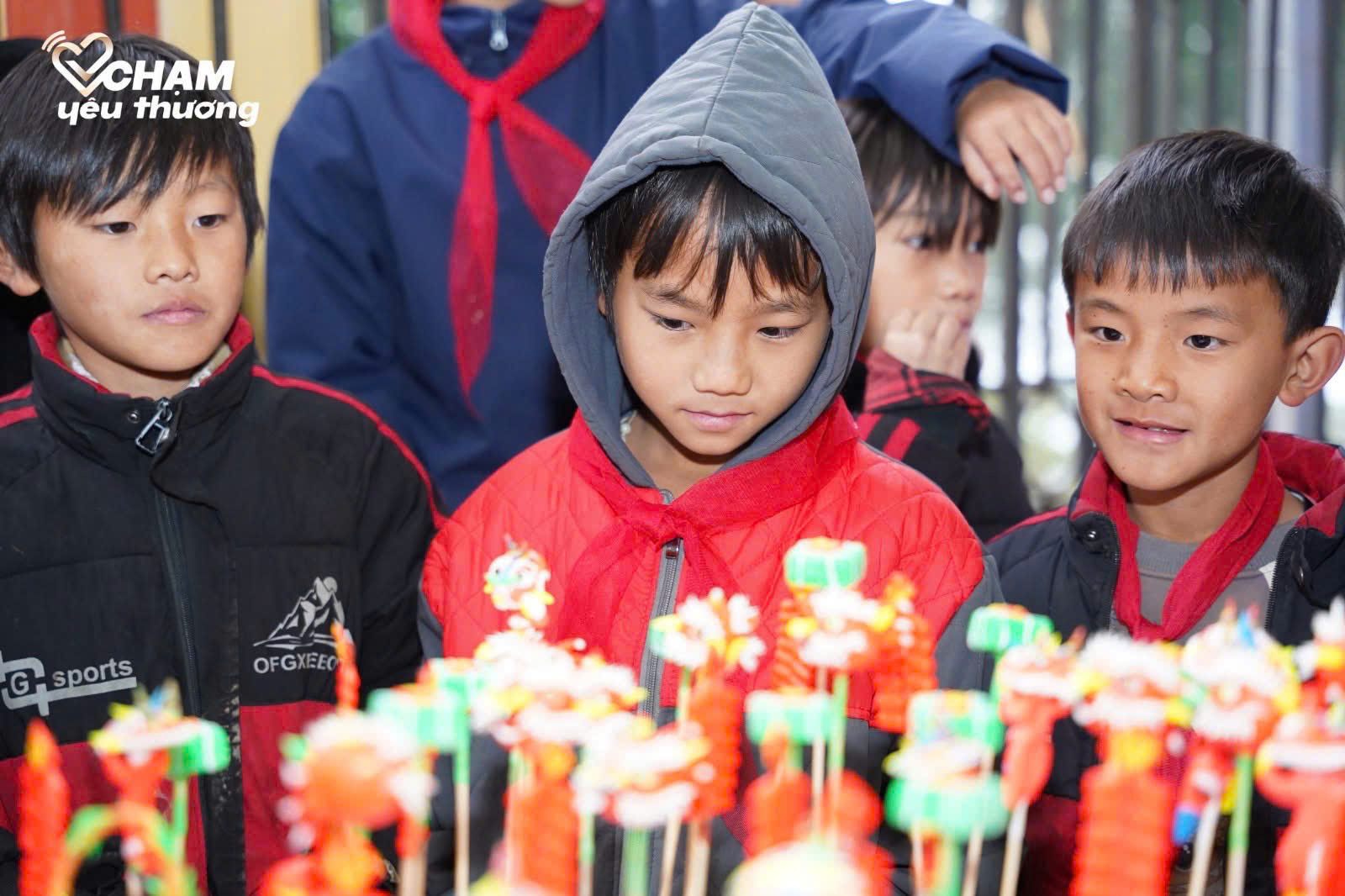 Ngay từ sáng sớm, hơn 400 chiếc áo gió đồng phục mới đã được trao tận tay các em. Giữa sân trường, những nụ cười rạng rỡ, có chút rụt rè hiện lên trên gương mặt lấm lem vì sương sớm. Em Giàng A Tủa, học sinh lớp 4, ôm chặt chiếc áo mới vào lòng, lí nhí: "Con vui lắm ạ. Áo dày và ấm lắm, có áo này con đi bộ đi học sẽ không sợ lạnh nữa. Con cảm ơn các cô chú nhiều ạ!".